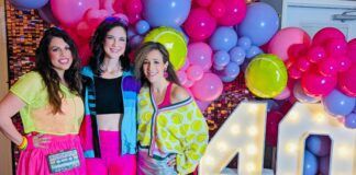 1985 meets tennis fun at this trio’s 40th birthday celebration