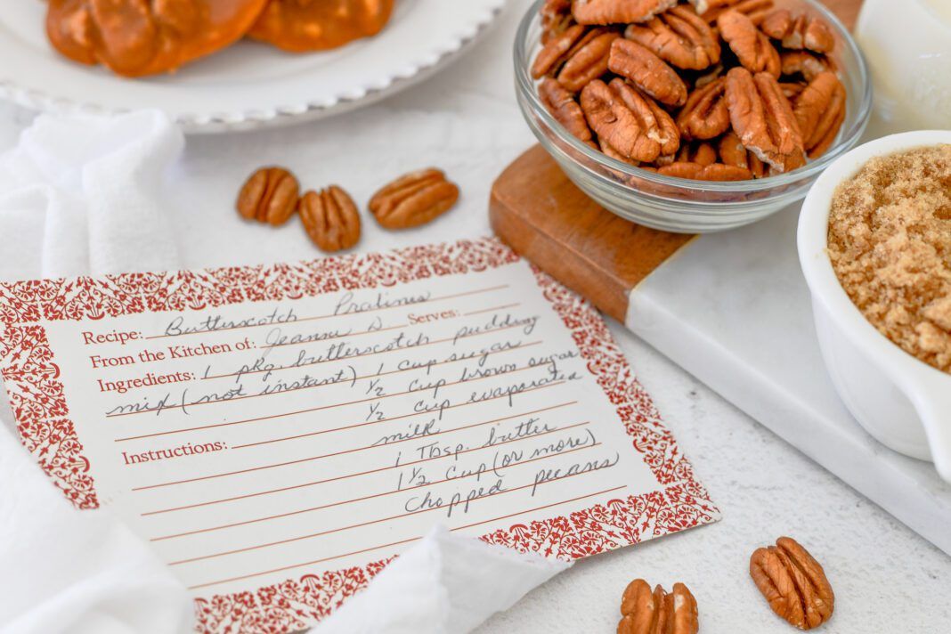 I made a point of having her handwrite her Butterscotch Pralines recipe years ago when I was working on The Traveling Apron cookbook. I knew that one day I would cherish not only her recipe but her handwriting as well. I highly recommend you request that your loved ones do the same.