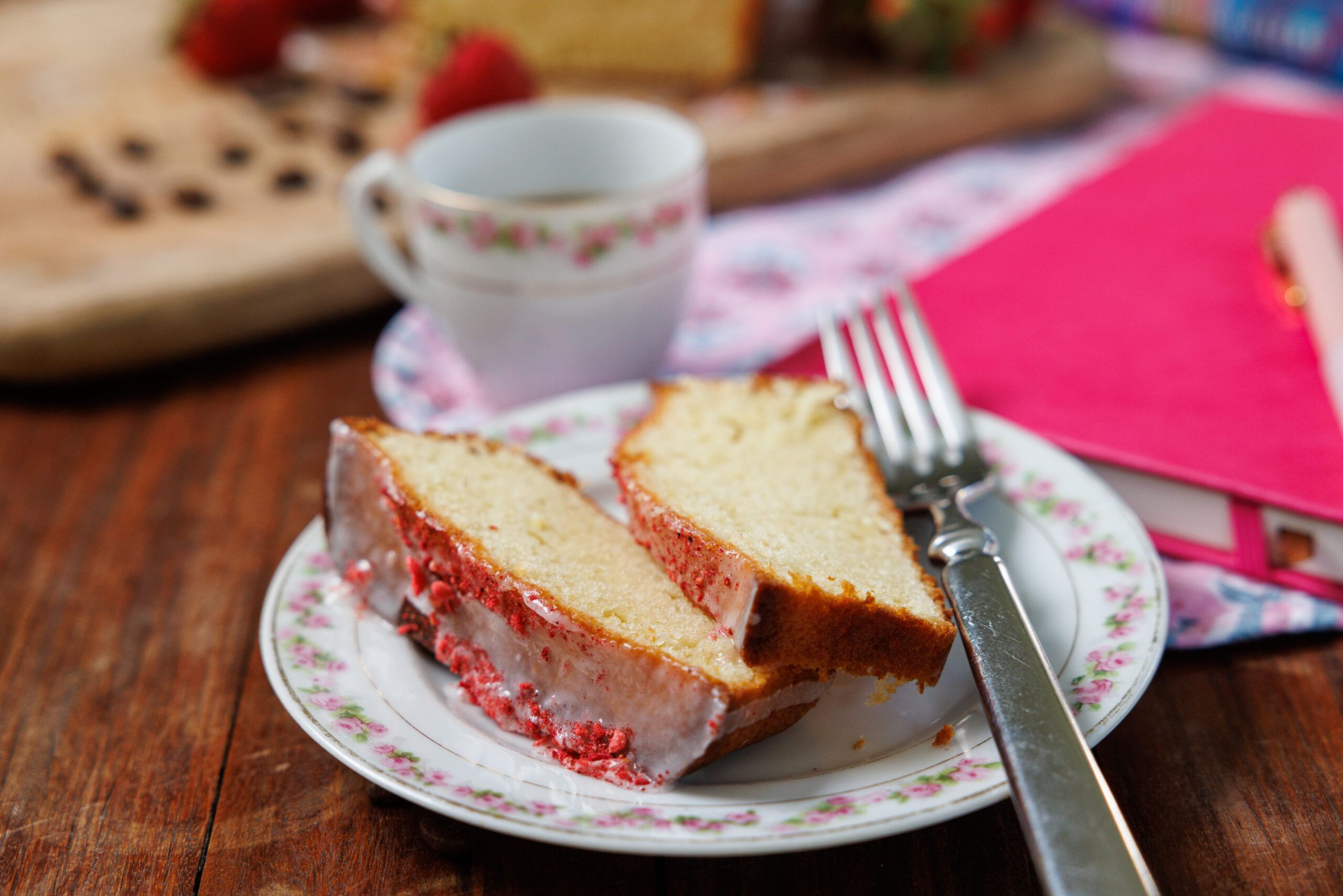 Combine powdered sugar and milk and drizzle over cake. Sprinkle with crushed berries and serve in thick slices with your morning brew.