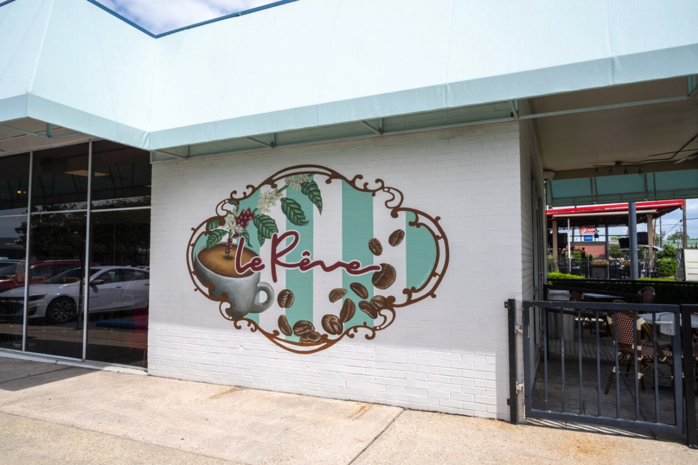 The exterior is also decked out with murals by local artist Kristen Serio. One, designed by Serio along with Carter, features the shop’s name surrounded by a latte and coffee beans; another is a simple rendering of the shop’s name; and a third contains Le Rêve’s tagline, “Dream of better coffee.”