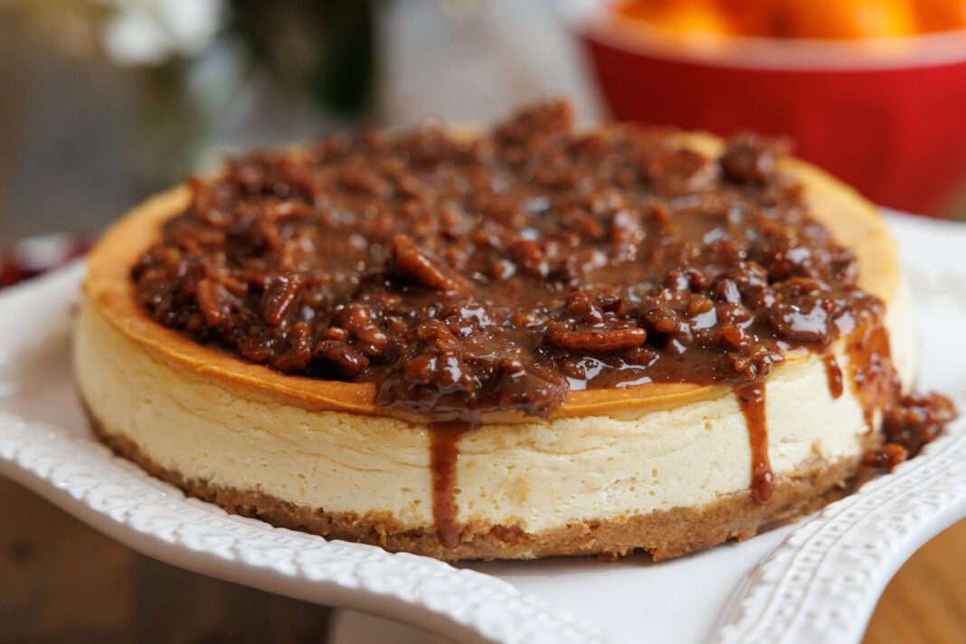 inRegister food columnist, April Hamilton, tried this cheesecake, which features a rich bourbon praline sauce, at her friend Cheryl Cloud’s home, and was an immediate fan. Cloud learned how to bake a crack-free cheesecake while taking classes at Louisiana Culinary Institute. In this recipe, Hamilton shares Cloud’s tips and tricks so everyone can bring this cheesecake to their holiday table–no flaws in sight.