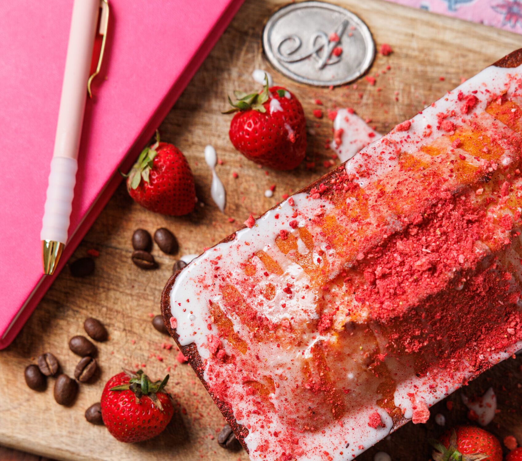 Combine powdered sugar and milk and drizzle over cake. Sprinkle with crushed berries and serve in thick slices with your morning brew.
