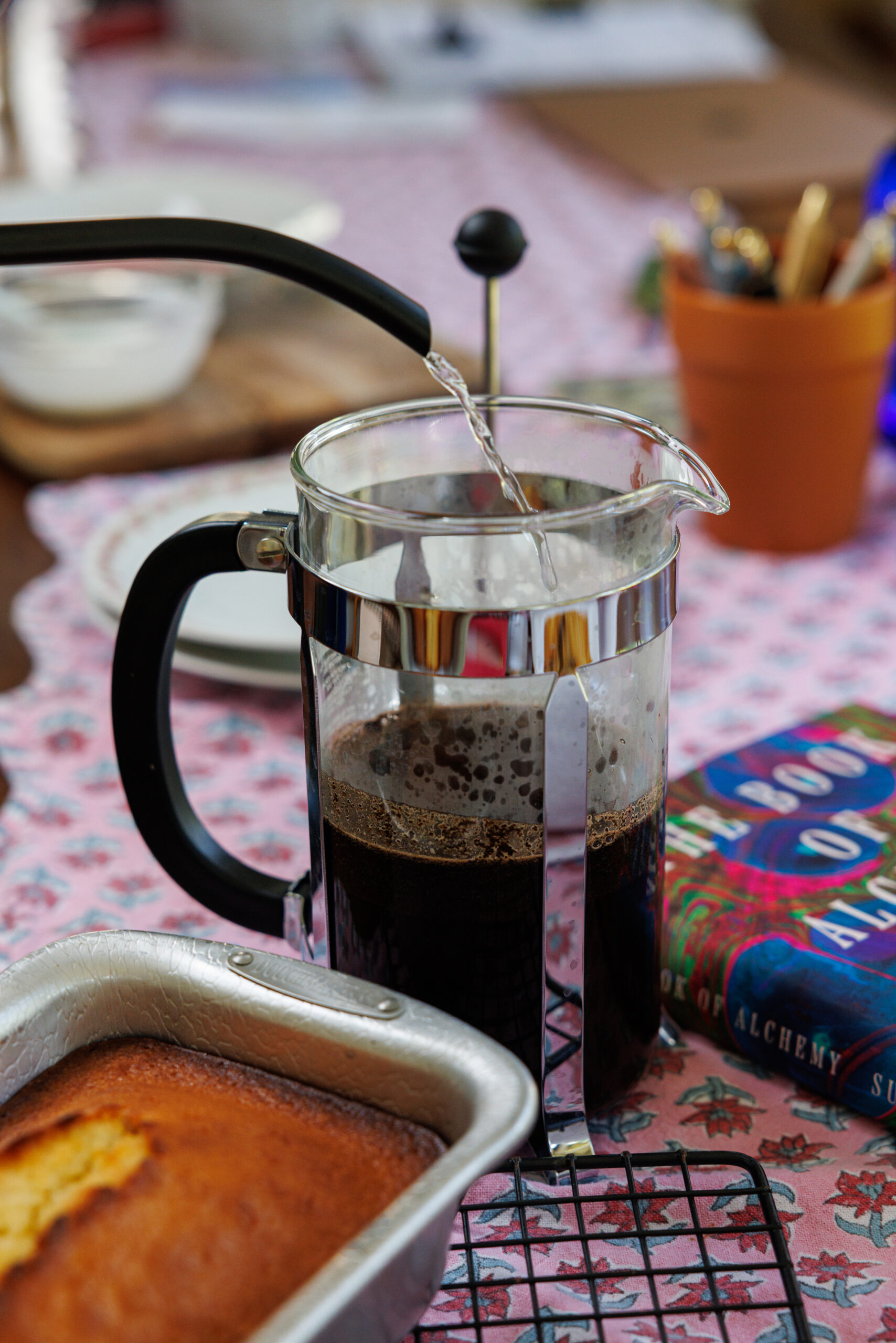 So simple and satisfying. Suleika Jaouad lets her coffee steep while selecting her morning writing prompt, then presses and enjoys while journaling.