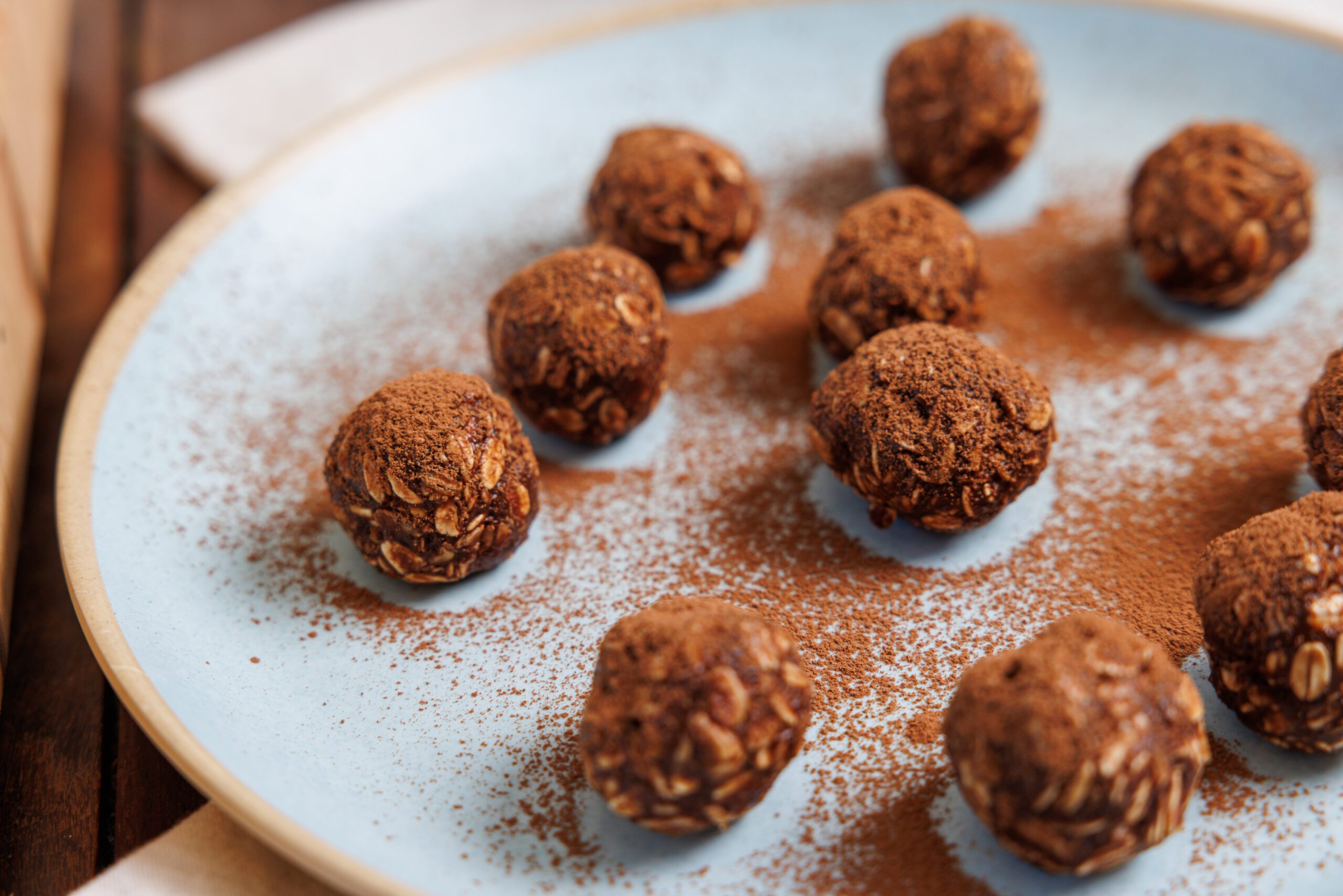 Line a rimmed baking sheet with parchment paper. Using a small cookie-dough scoop or tablespoon, scoop out 18 to 20 equal-sized portions and drop them onto parchment paper.* Roll each piece between your palms to make small balls and sprinkle with extra cocoa powder. Place in a single layer in an airtight container, and refrigerate until serving time. Balls will keep up to 2 weeks in refrigerator, ready to serve at your next fika coffee date.