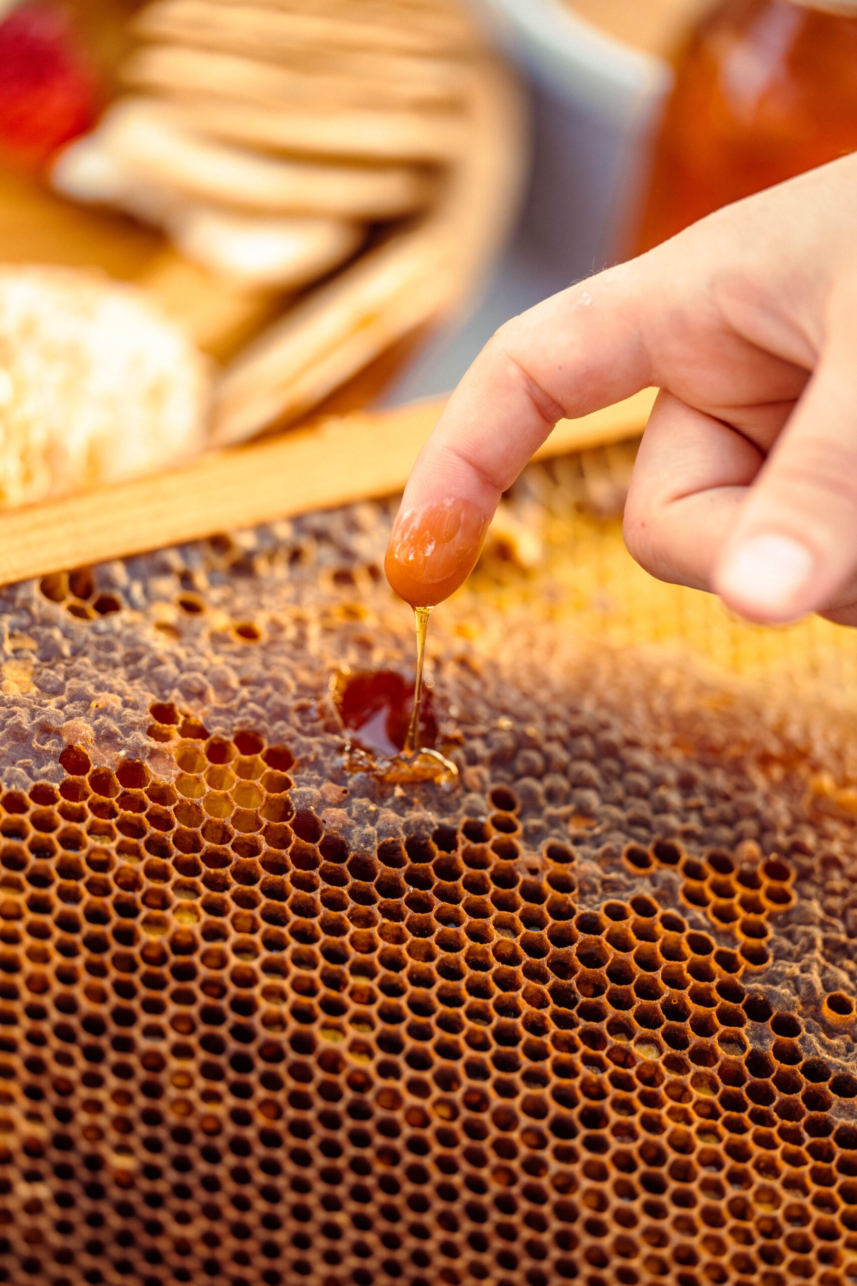Langley completes his charcuterie board with honey straight from the hive by placing a frame—bees and all—on the table. Guests are encouraged to dip fingers directly into the honeycomb for fresh, raw and unfiltered honey straight from the source. To top it all off, pair it all with a floral or full-bodied mead, also known as honey wine.