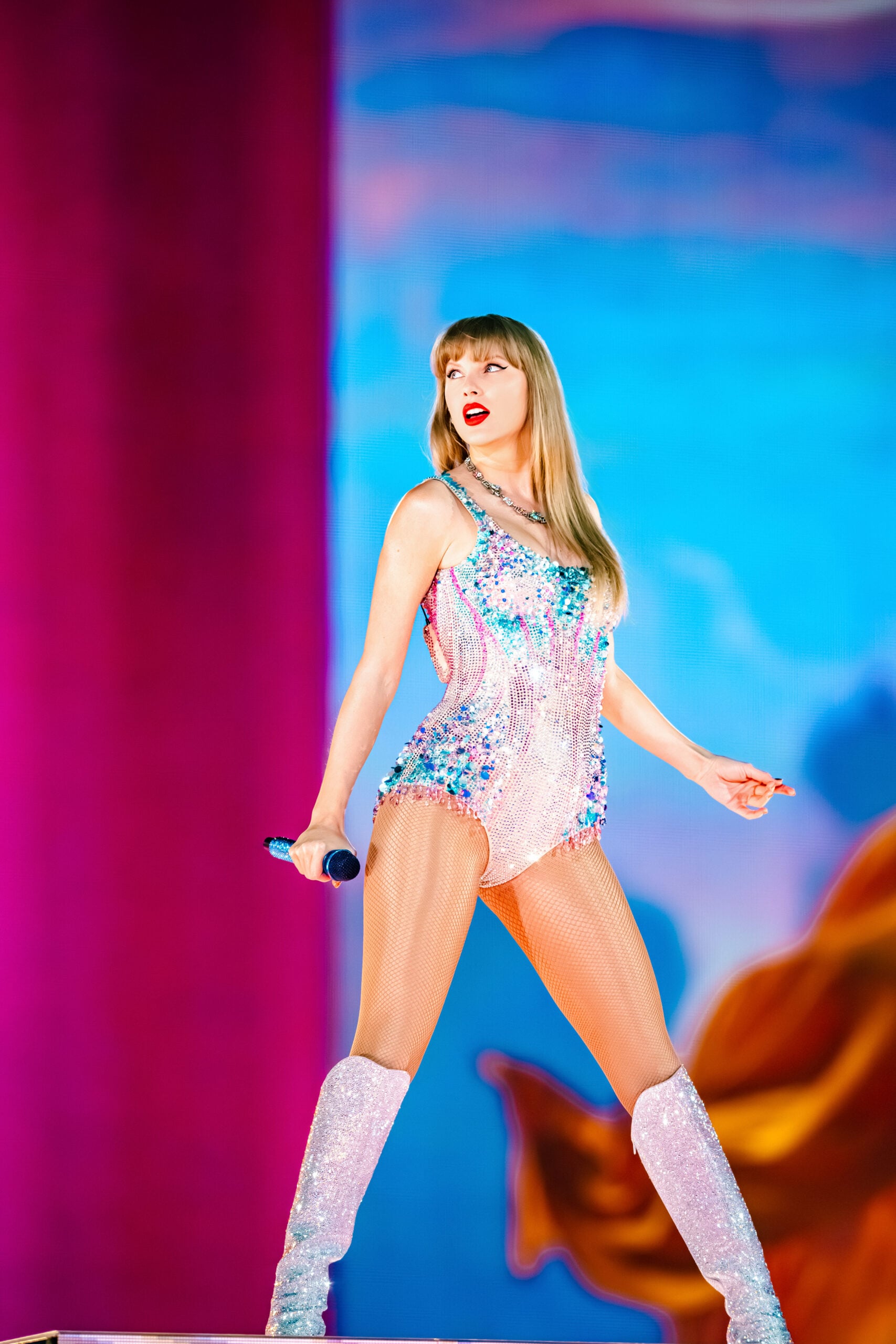 Taylor took the stage promptly at 8 p.m., a fact I do not take lightly. To me, nothing says “I care” like being on time. My eyes welled with tears as the breathtaking, larger-than-life displays worn by her dance team erupted one by one on the stage for her opening performance, a mash-up of “Miss Americana & The Heartbreak Prince” and “Cruel Summer.”