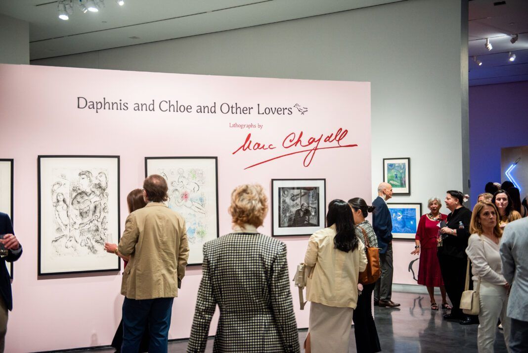 To celebrate the opening of its newest exhibition, Daphnis and Chloe and Other Lovers: Lithographs by Marc Chagall, the LSU Museum of Art held a Valentine’s Day-themed event, Champagne & Chagall, on the evening of Thursday, February 12. With love being a persistent theme throughout the artist’s successful career, it was an ideal start to Valentine’s Day weekend, especially for art lovers.