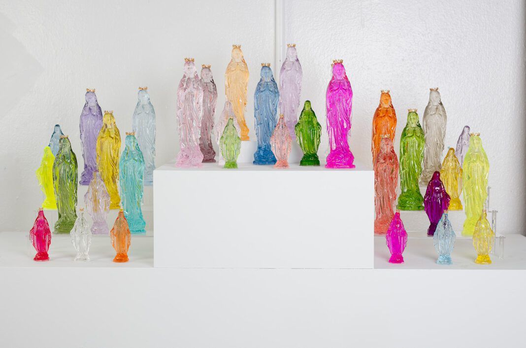 The sculptures are available in a variety of colors, ranging from bright, bold and fluorescent shades to more muted hues, ensuring there is a Mary fit for every home. “She’s for everyone, not just the traditional people in church pews,” Abigail says.