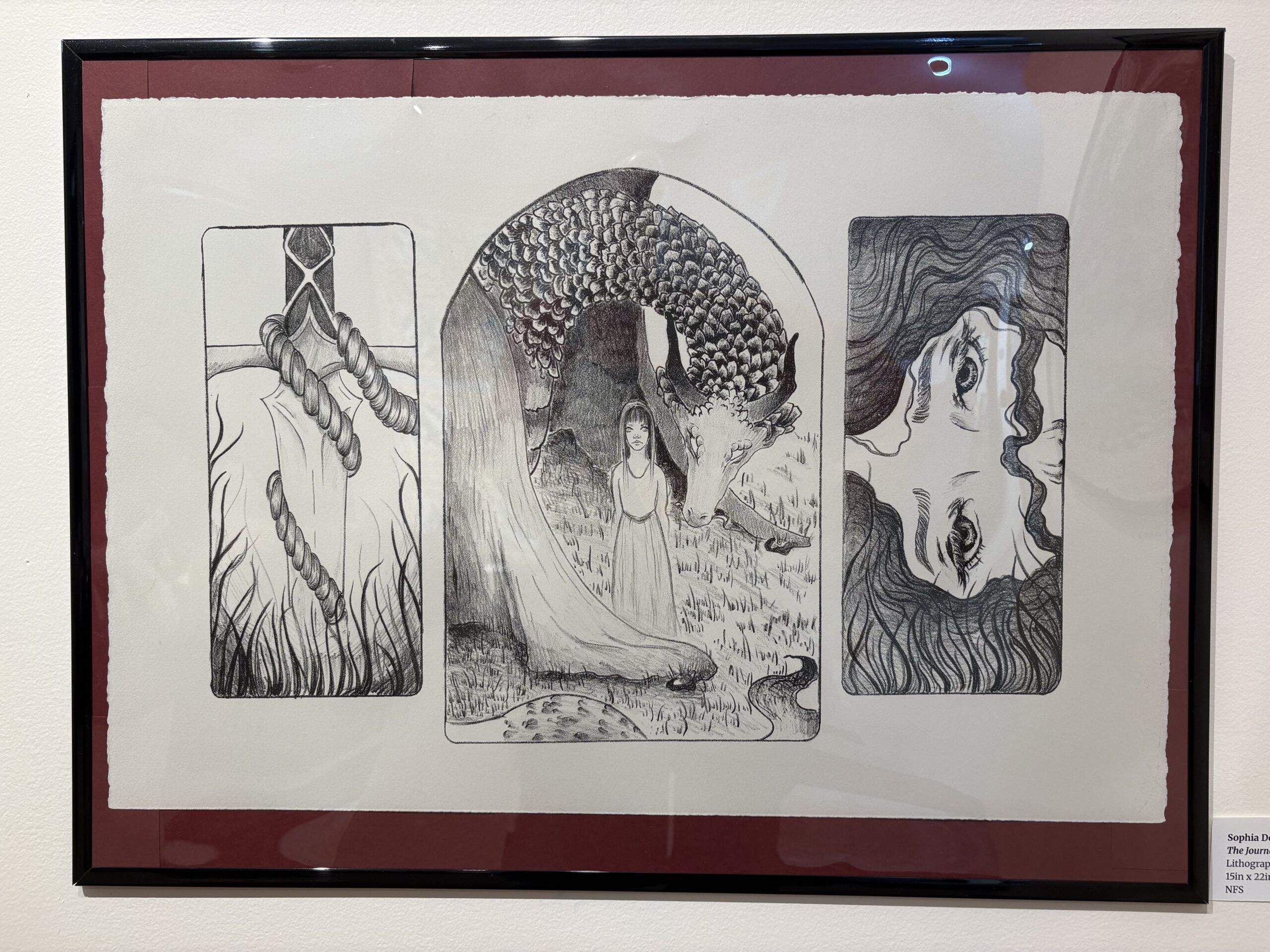 The artists say they are all heavily inspired by storytelling, combining visual art and writing. They say that working in a shared studio made it easy to discuss ideas and draw inspiration from one another, making the overall exhibit more cohesive.