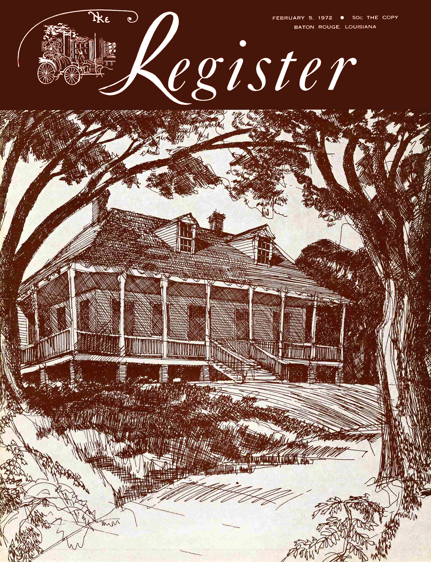 The cover of the February 1972 issue of The Register featured a sketch of Magnolia Mound by John Desmond, a fellow of the American Institute of Architecture. That year, the Foundation for Historical Louisiana launched a fundraising drive to restore the antebellum structure dating back to 1790. Known to most Baton Rougeans at the time as the Prince Murat, and only a few years prior purchased by the city of Baton Rouge from private owners, the fundraising efforts were set squarely on restoring the structure to its original beauty and function.