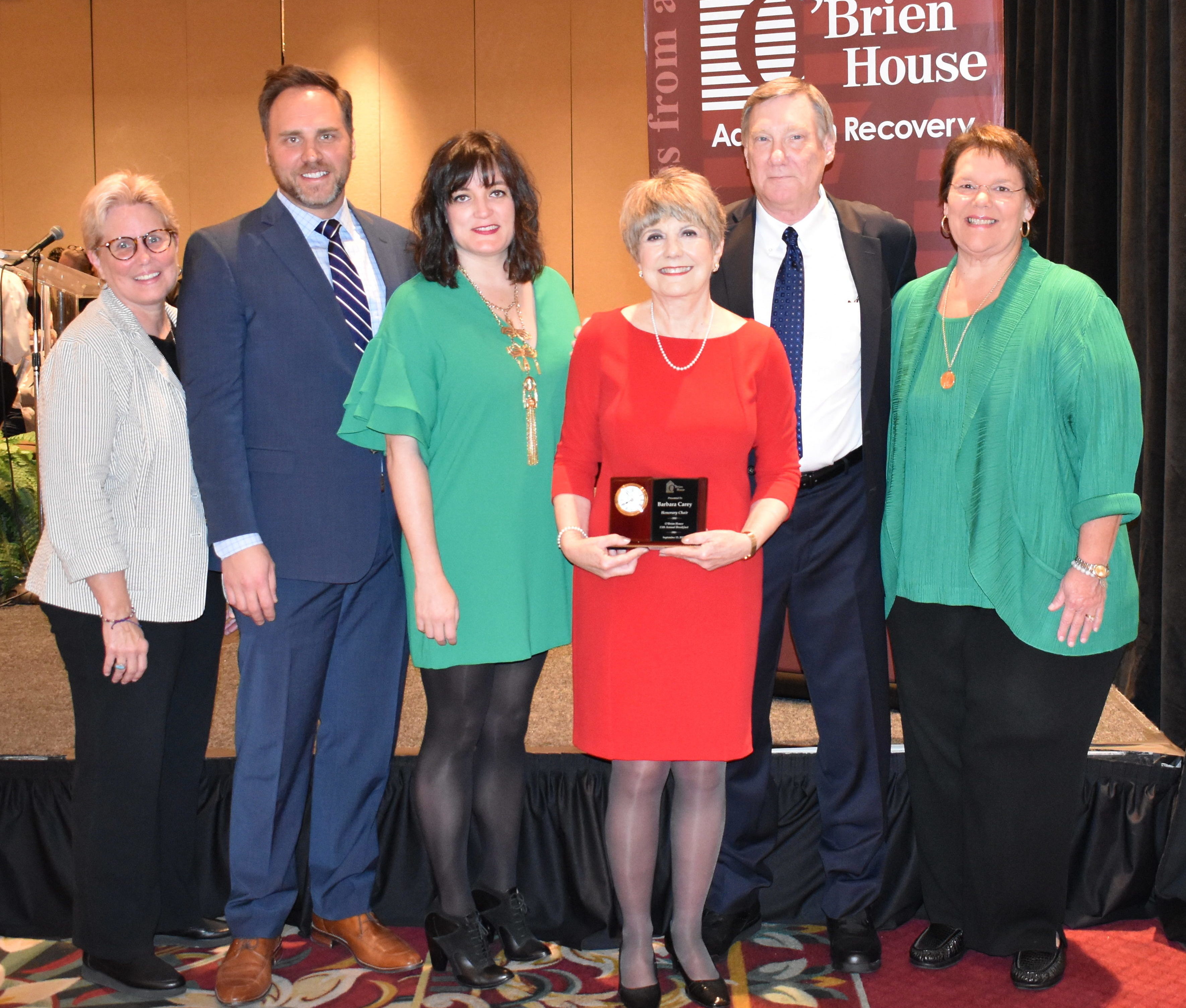 O’Brien House hosted their 15th annual Breakfast September 13 at the Crowne Plaza. This event marked the inaugural year of O’Brien House’s essay contest, for which local students were asked to explore how addiction has touched their lives. Winners Garret Byrne and Anna Cattar were honored, along with Honorary Chair Barbara Carey.