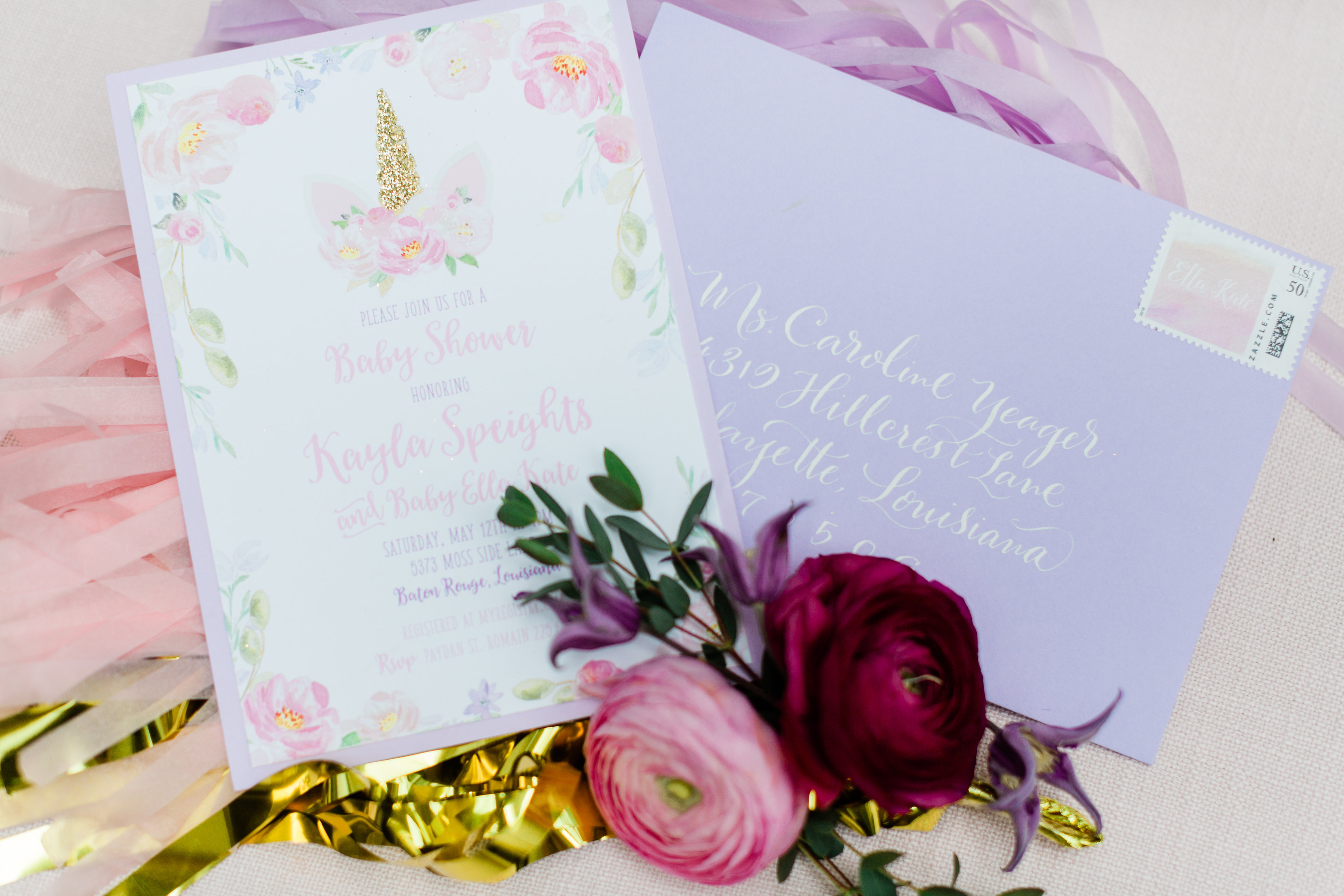 And Babin added a ton of whimsy and fun with unicorns and cotton candy Champagne, in addition to the flowers, to create a magical afternoon in anticipation of the special delivery. Plenty of pink details and loads of sugary treats made it special.