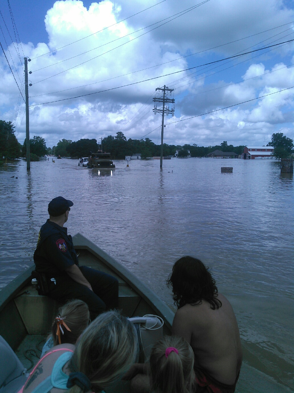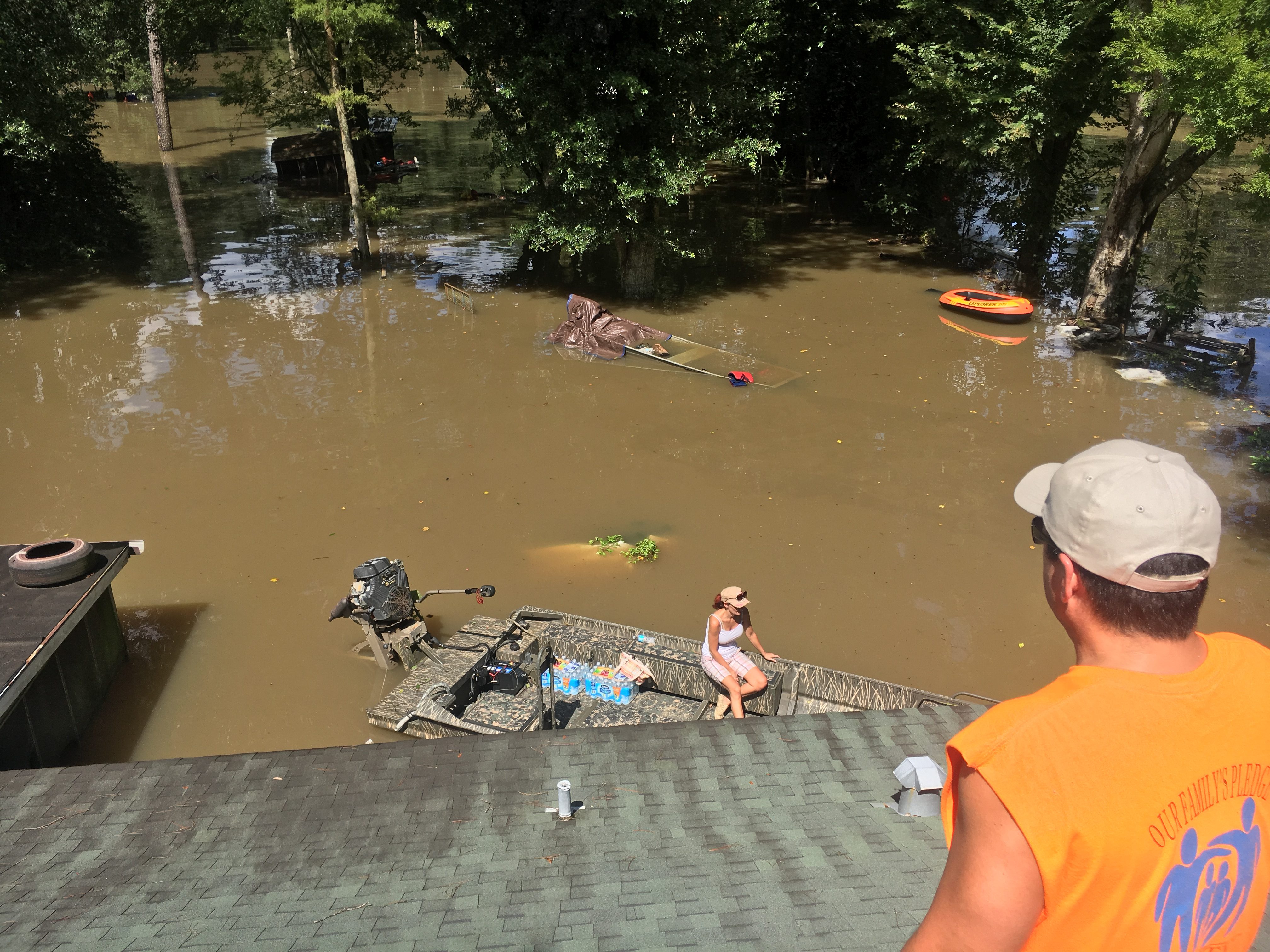 He got his family out and spent the day boating through his neighborhood, street by street maneuvering around mailboxes, through narrow trees and over fire hydrants in his 16-foot, 25-horsepower aluminum boat. And he wasn’t alone.