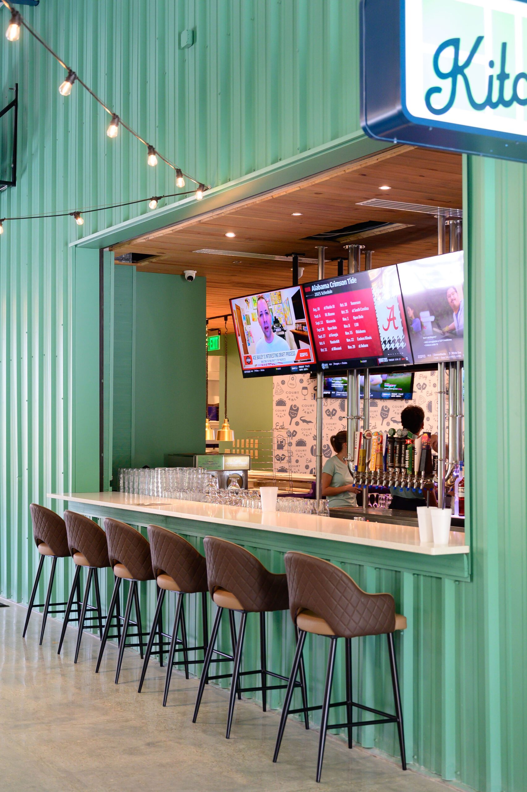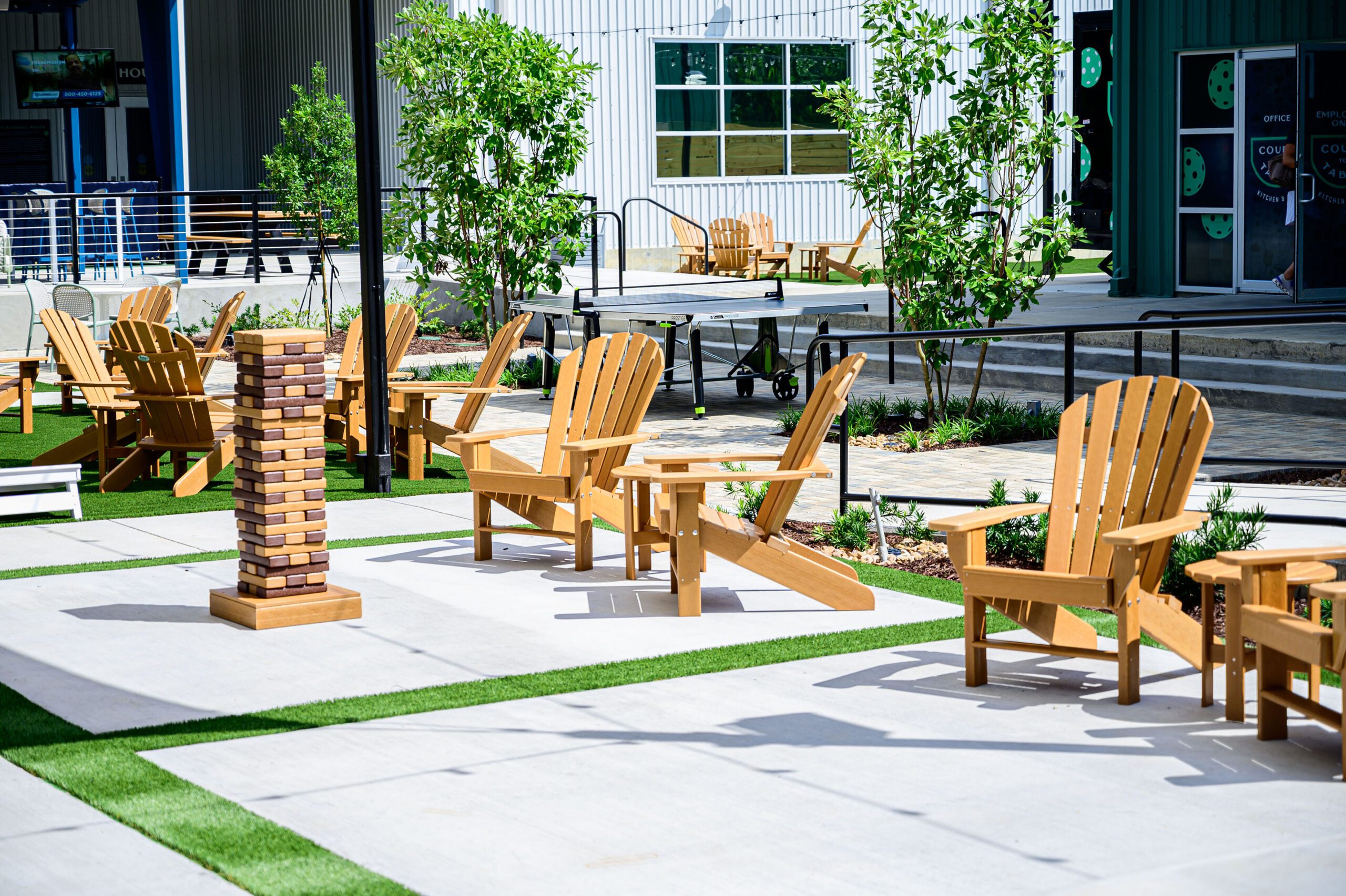 And the expansive site really does offer something for everyone, whether you’re athletic and competitive or just looking for good food, drinks and entertainment. In the center of the facility sits a large courtyard with casual seating, fire pits, a stage for music performances, outdoor games like cornhole and more. “There’s nowhere else in Baton Rouge that has a combination of all of this,” McKernan says.