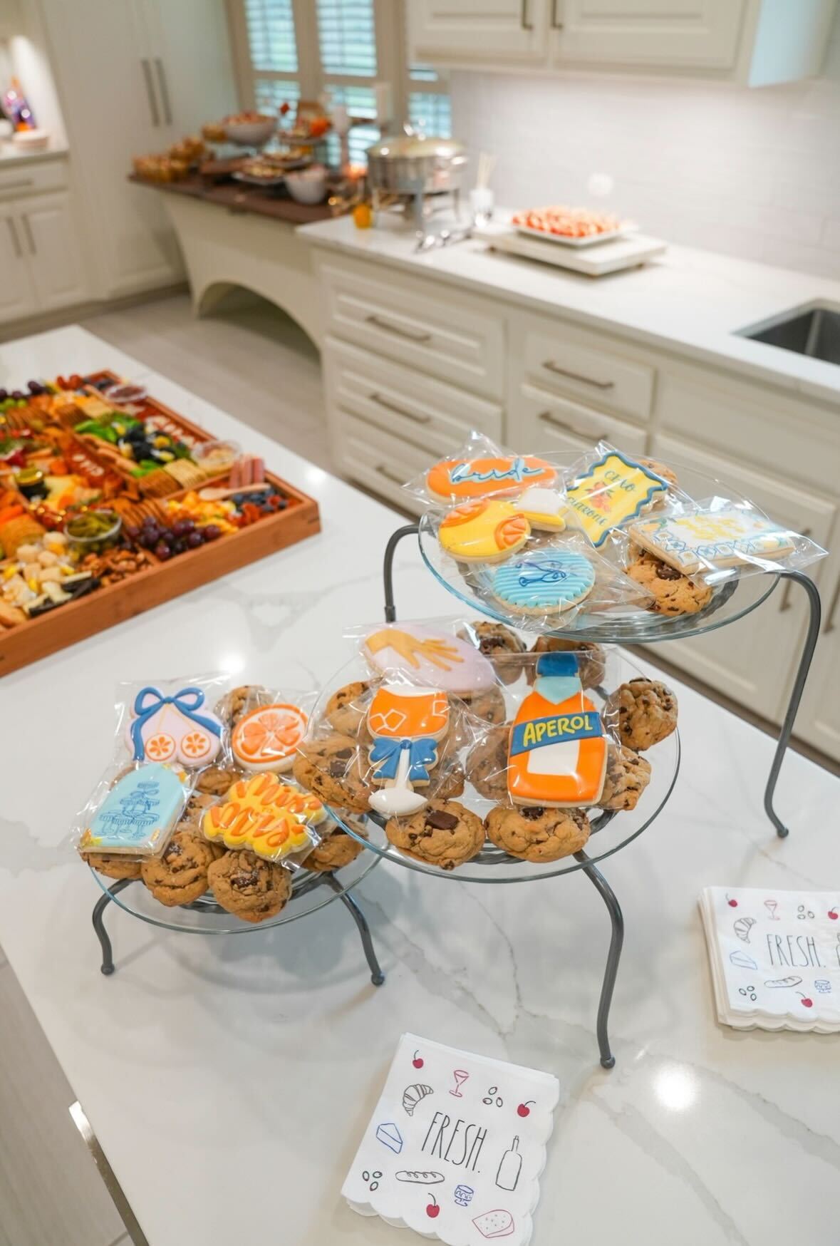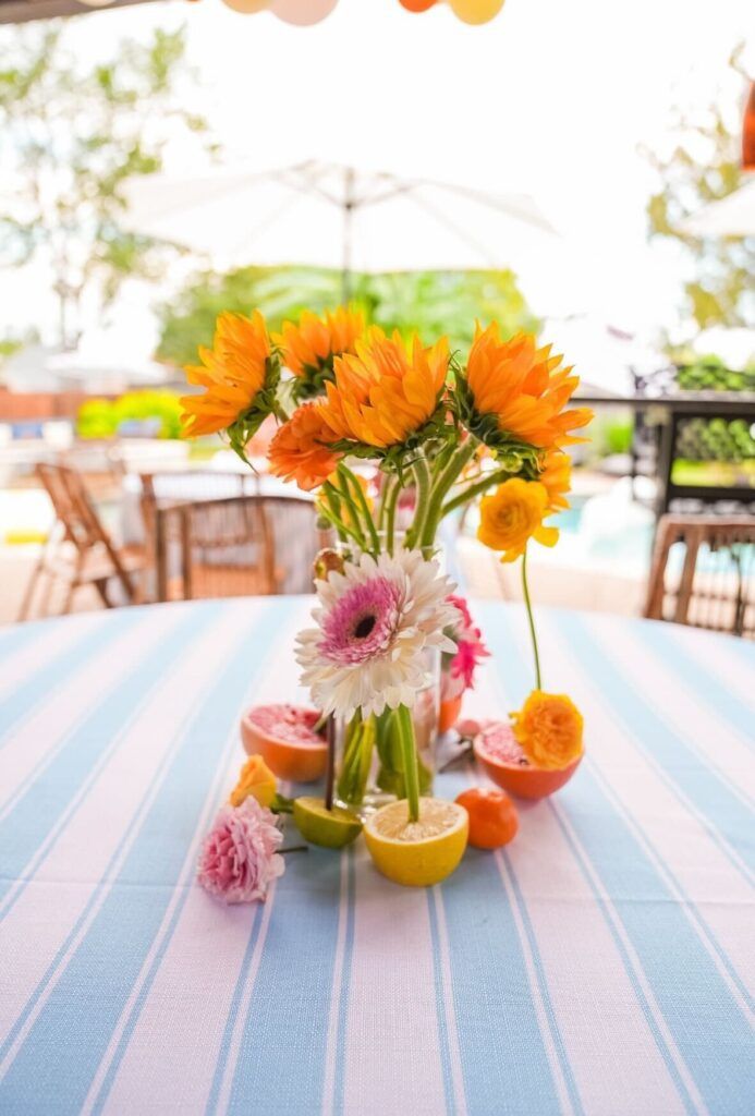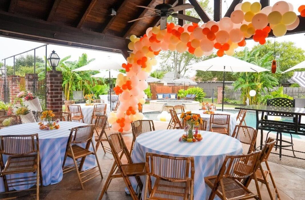 “My favorite part was probably when her fiancé showed up later in the party with a blue and white striped shirt, khaki shorts and orange roses,” Fossier says. “He was very on theme, but nobody gave him instructions to do that, and it was very sweet.”