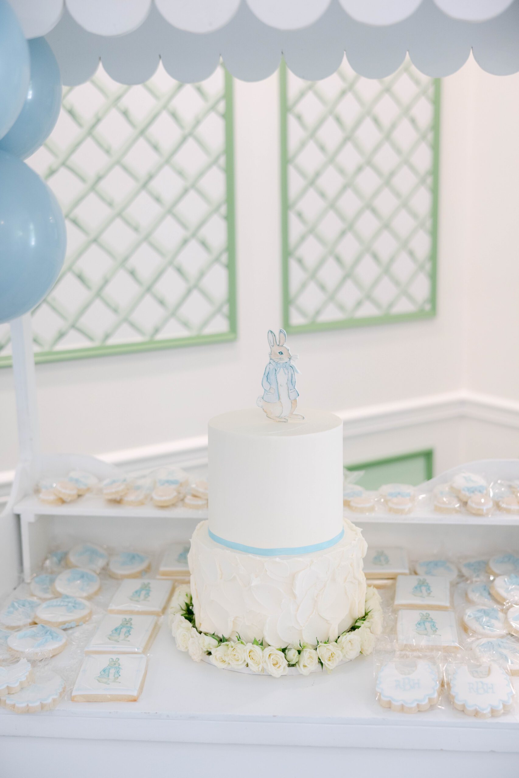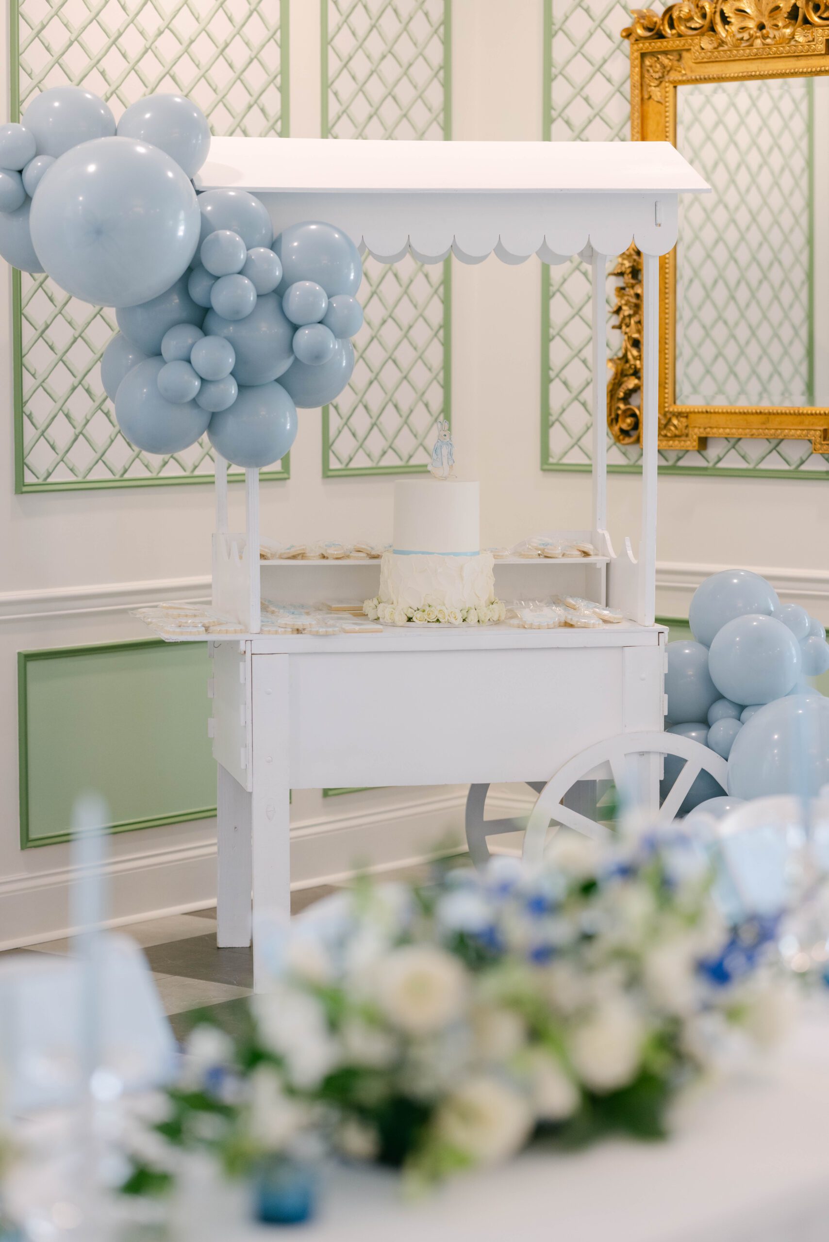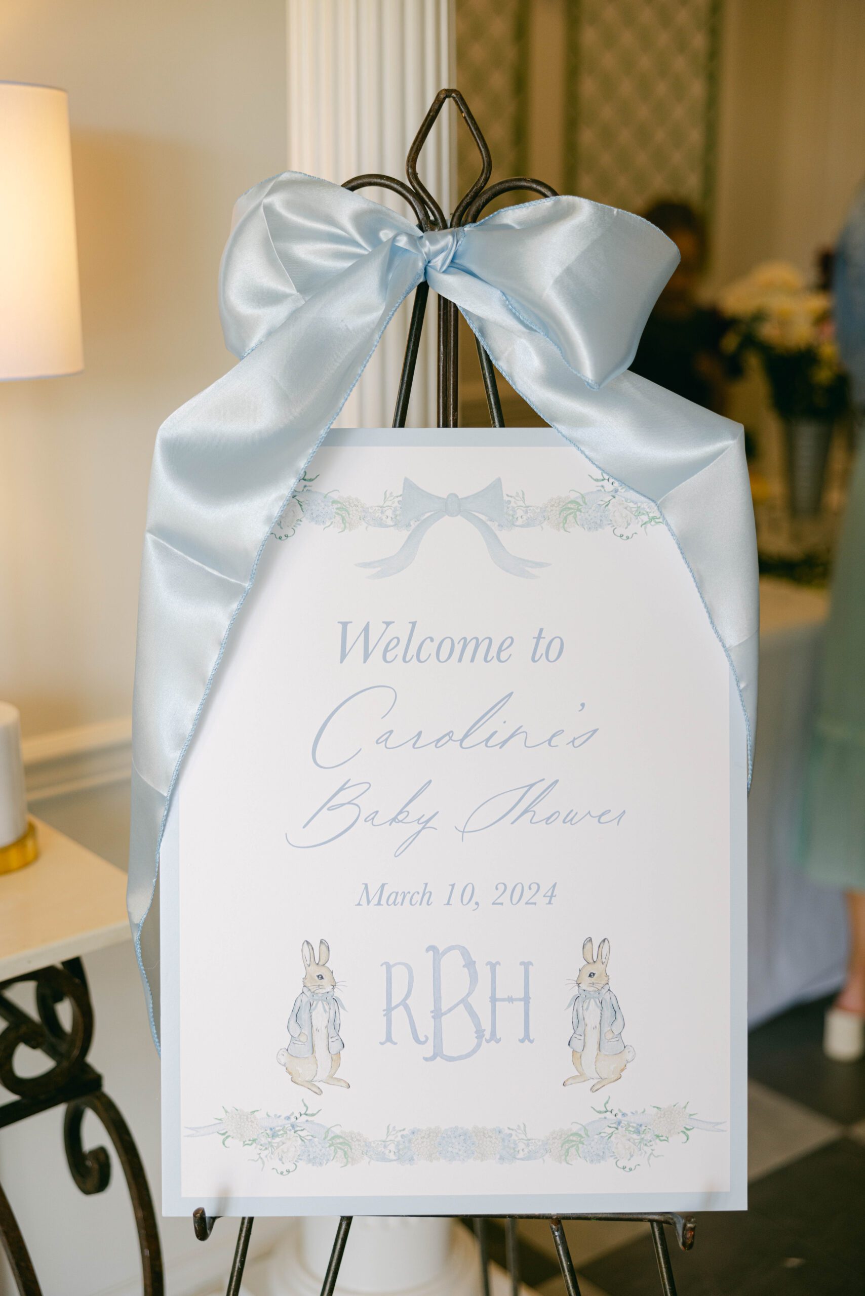 Dainty blues, bows and bunnies made this baby shower a dreamy celebration