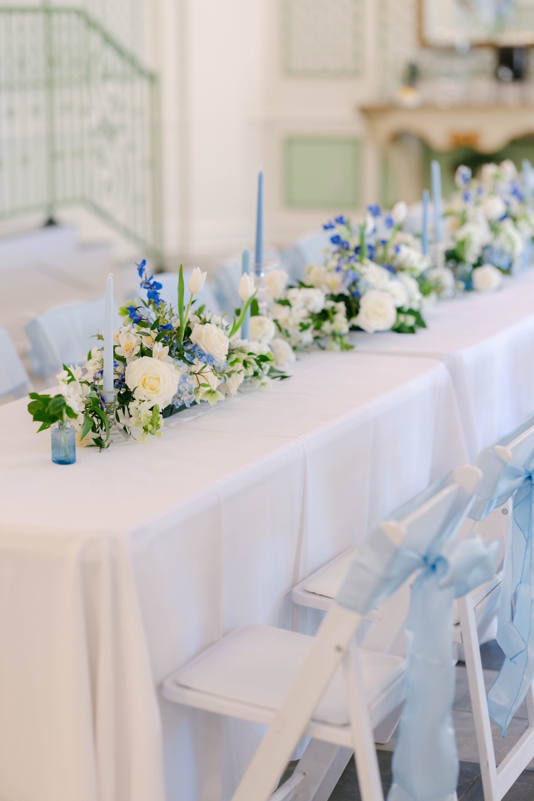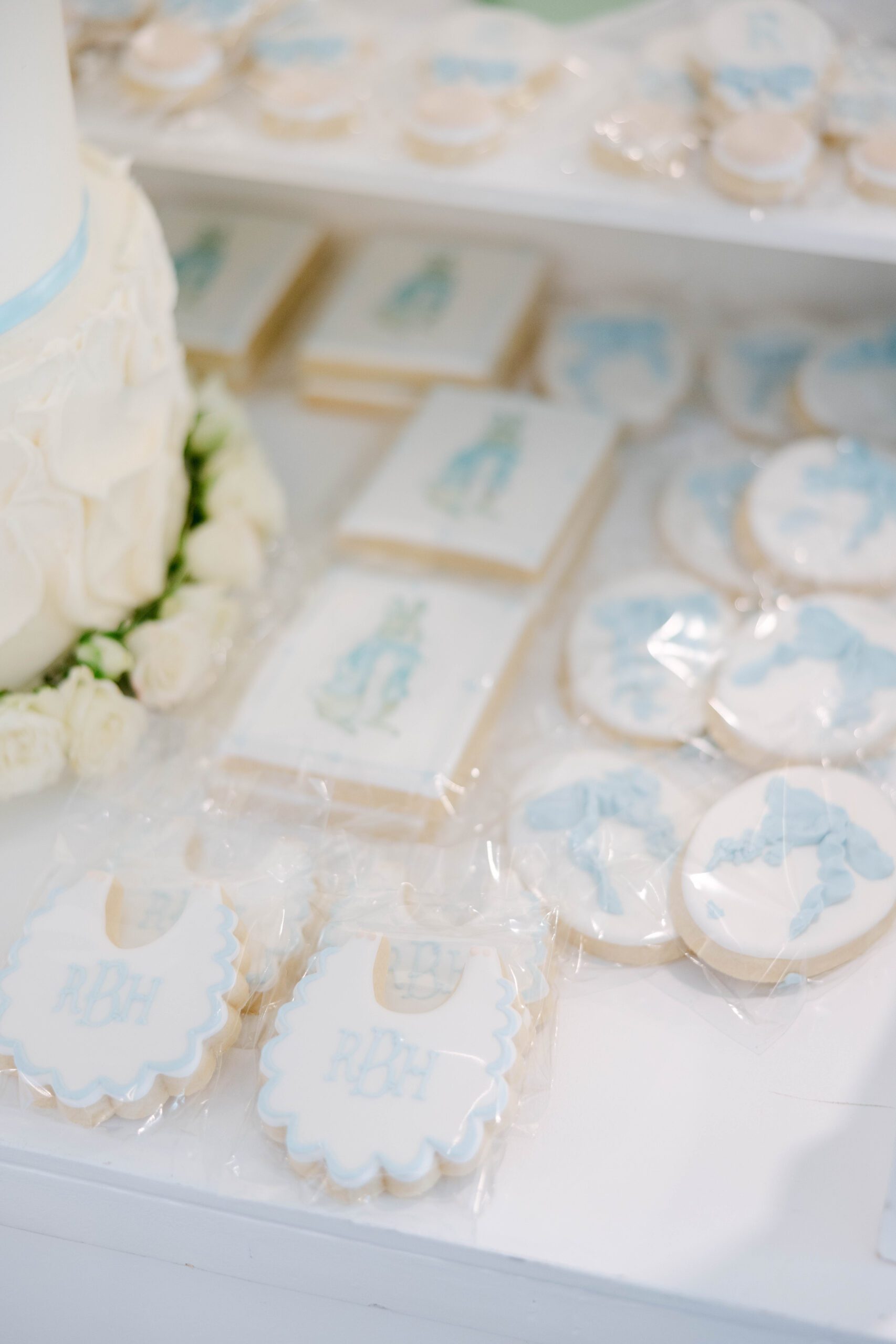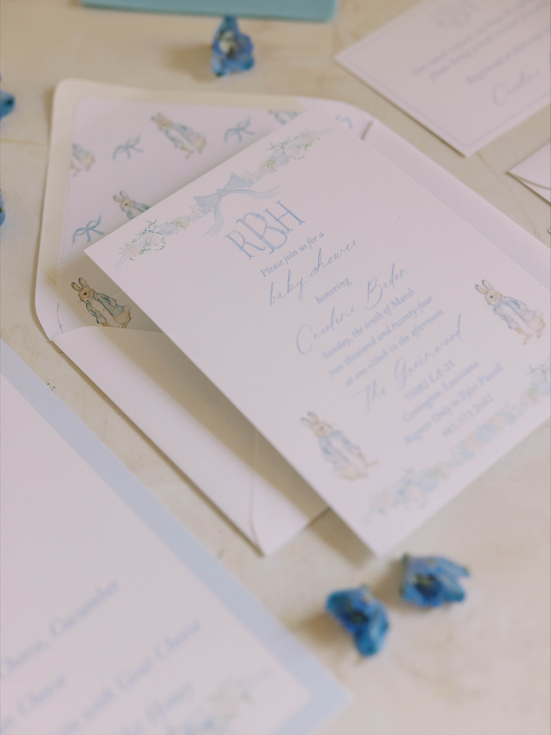 Dainty blues, bows and bunnies made this baby shower a dreamy celebration