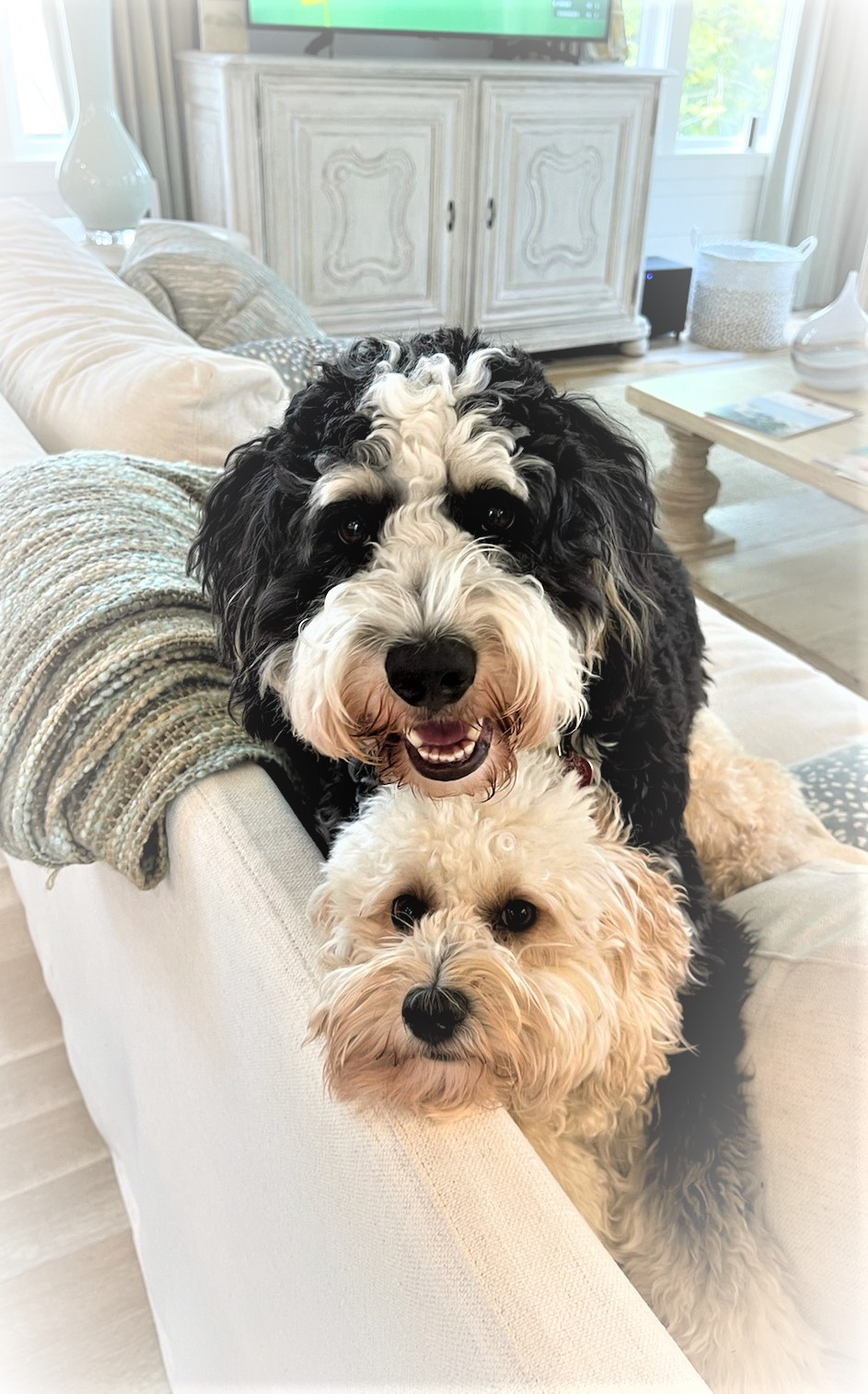 “My now-husband and I got Bentley when I was a freshman in college. He’s been our sidekick through thick and thin. Right before COVID began last March, we got a call that someone did not come pick up their puppy and that she had the same dad as Bentley. We knew we’d be home a lot more and thought it was the perfect time to get ‘Benny’ a friend. We can’t imagine our lives without these two fur babies.”
