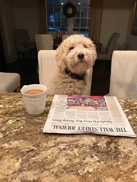“Christopher is my son Tim’s dog but doesn’t know he is a dog. He will be the ring bearer for Tim’s wedding!”