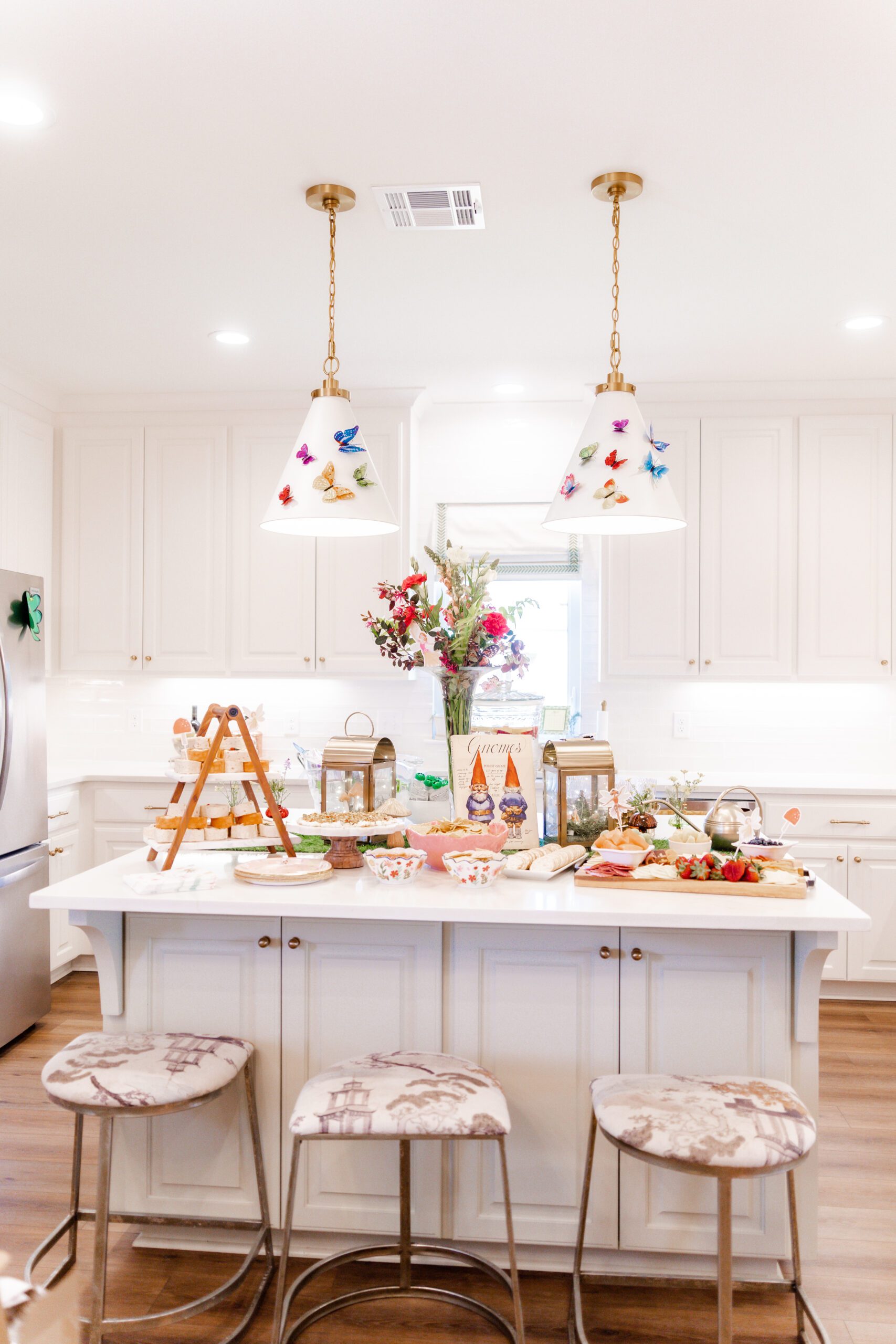 “I love that everyone chips in a little something and it becomes so magical,” she says. “From food made by family, photos taken by Katherine’s talented Aunt KK, the cutest fairy house decorated with help from my sweet littles, to the cutest mushroom bud vases borrowed from a friend, each detail came together because we all did!”