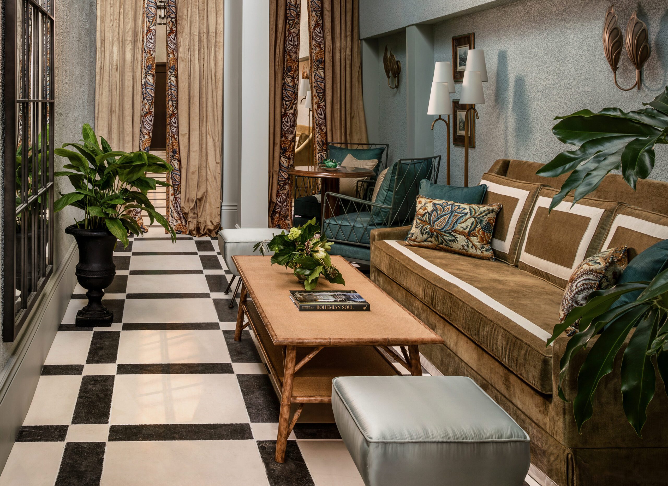 Within the suites, Ward + Gray layered custom pieces ranging from voodoo-inspired rugs and curved sofas to crystal chandeliers and bespoke patterned wallpapers. They also added unique locally found pieces from small shops, including Consign Consign on Magazine Street. “As a studio,” Ward explains, “we never employ a one-size-fits-all approach.”