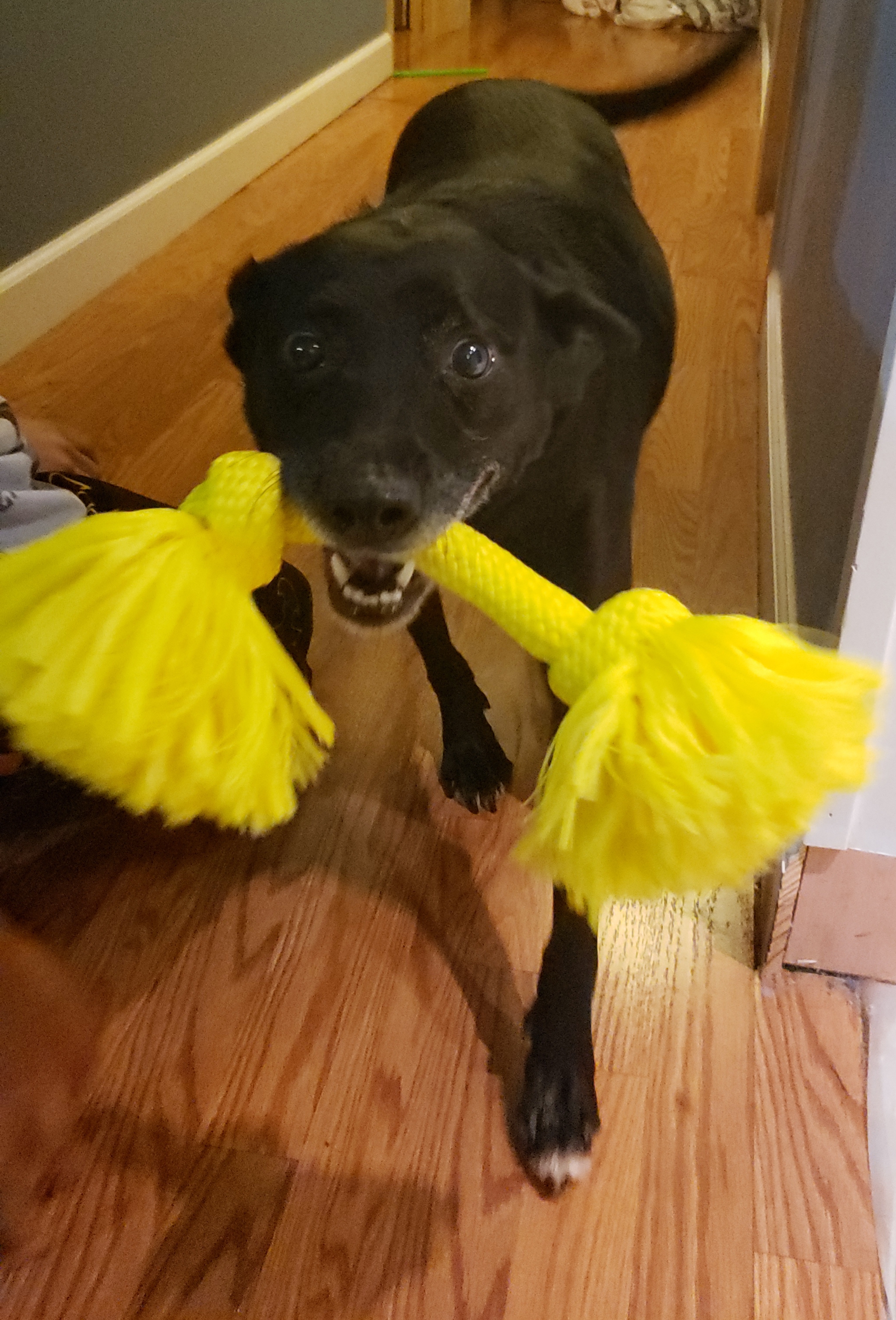 “Spot is a rescue from Walker. We used to say he had Yoda ears, but then he broke them and now he’s just a lop-eared dog like Old Yeller. He enjoys lounging on the porch, St. Patrick’s Day festivities, outdoor cookouts and carrying big sticks. All the neighbors know him–many of whom now walk their dogs on the other side of the street. He does have a sister named Lola who is very shy and spends most of her time hiding under the bed. She thinks we can’t see her. Spot has even been on the local news!” -Melanie Samaha, production director