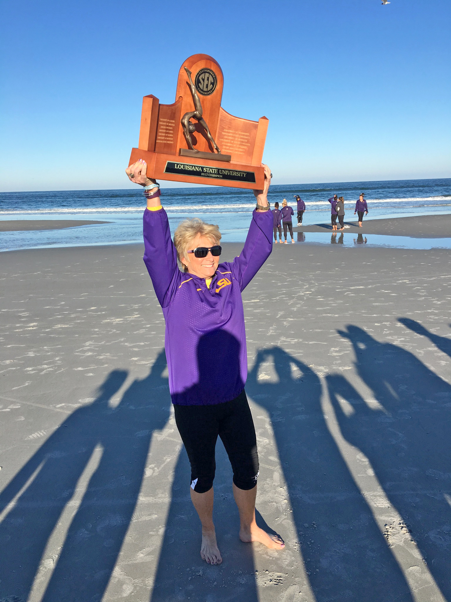 Now in her fifth decade at LSU, Breaux is known affectionately as the “Dean of Coaches,” and former LSU athletes from all sports call, text or drop in on her, in many cases long after their own mentors have moved on. “When they come back, they remember me, and they know I’m still here,” she says.