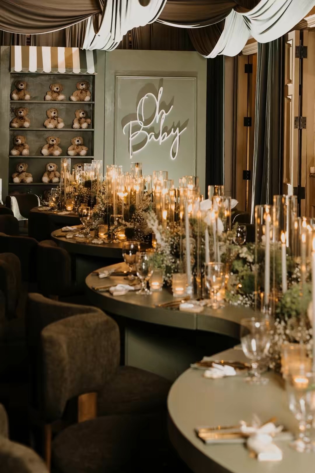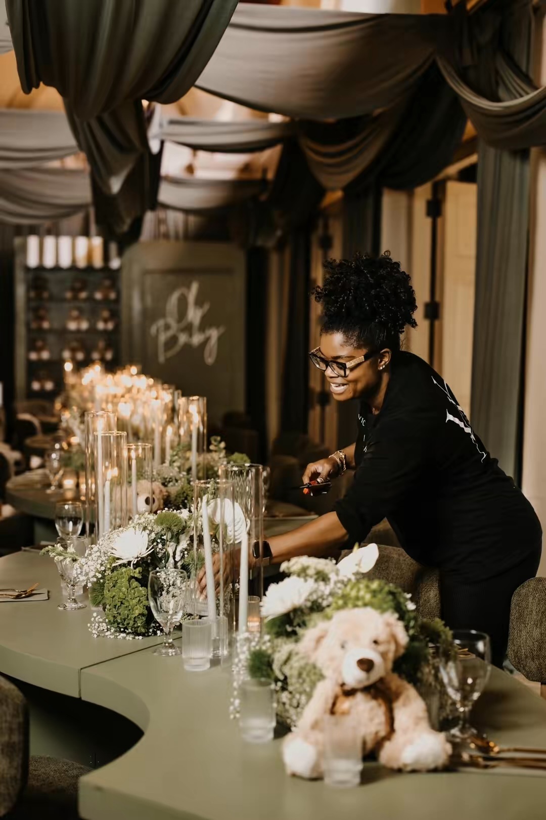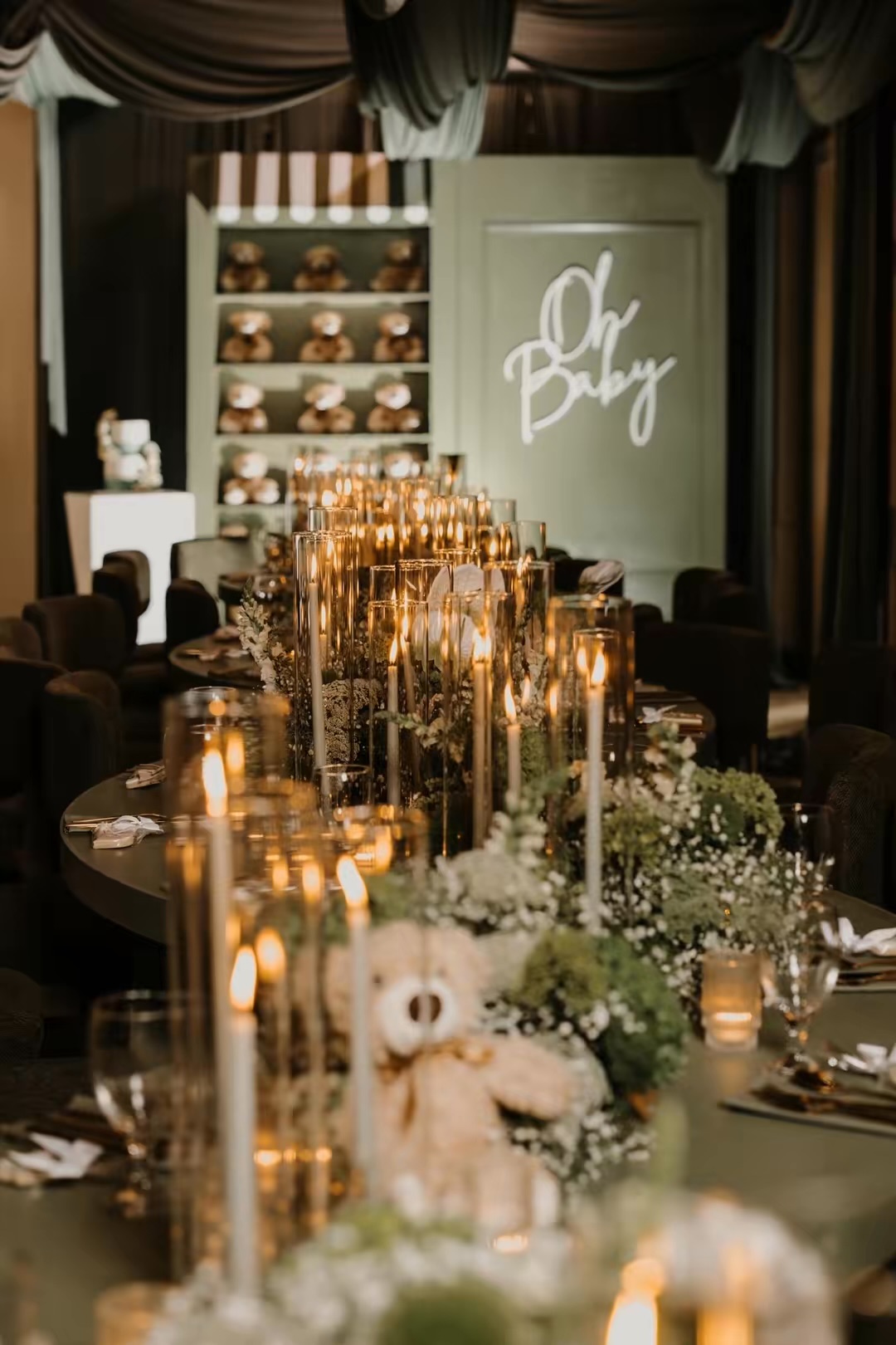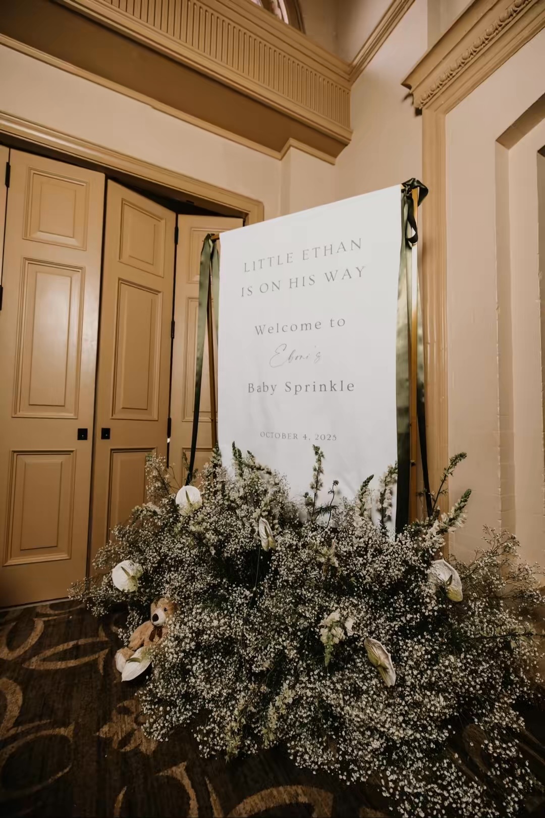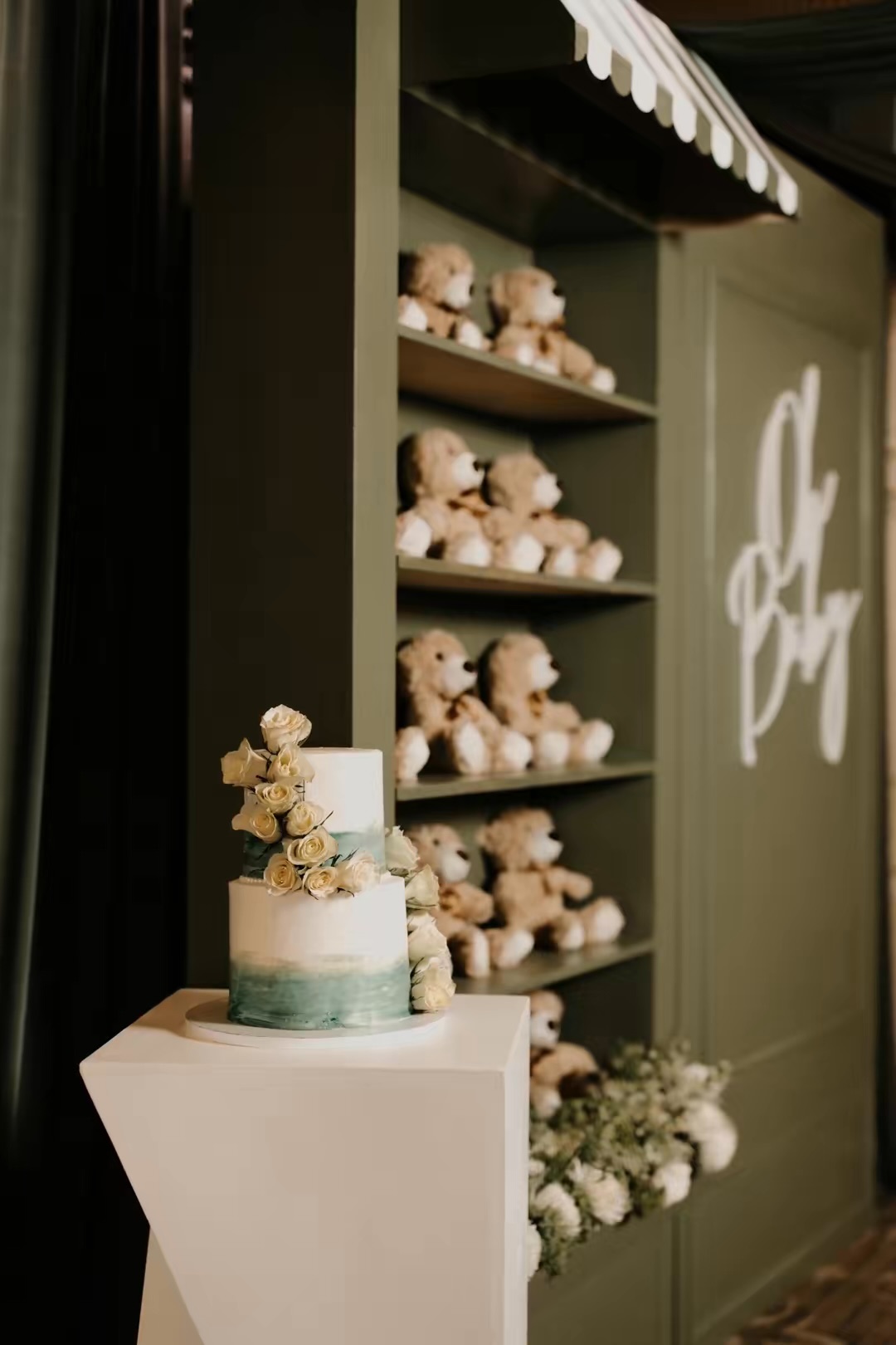 To incorporate baby-related details, Roberts leaned into teddy bears, which added warmth and texture to the overall design.