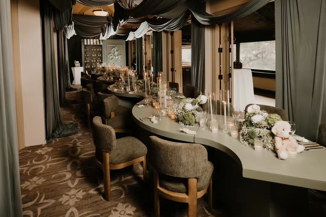 With layers of sage green, lush florals and flickering candles, event planner Victoria Roberts brought Eboni Buchanan’s second baby shower to life. Since this shower was Roberts’ second collaboration with the mommy-to-be, the duo envisioned something more sophisticated and minimalistic this time around. Buchanan gave Roberts the color scheme—sage green, white and touches of gold—and the rest, Roberts says, came together seamlessly.