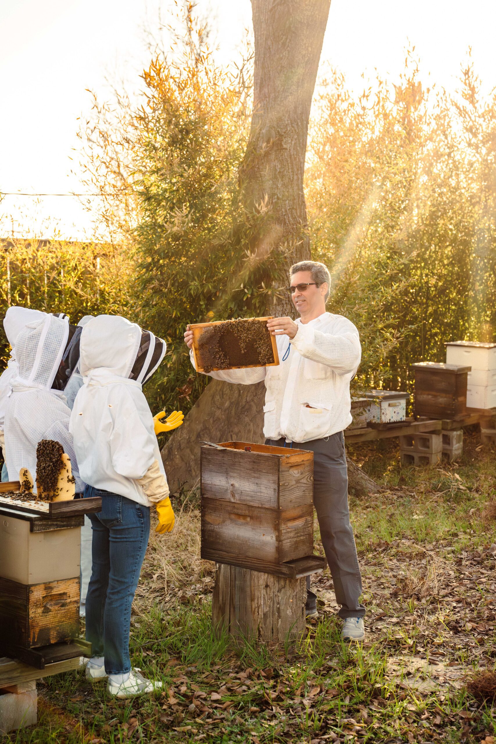 Slowly, as the day unfolded, each of us became so comfortable as to remove our veils, gloves and even jackets. The bees weren’t out to hurt us. They were trying to coexist—quite peacefully—alongside us.