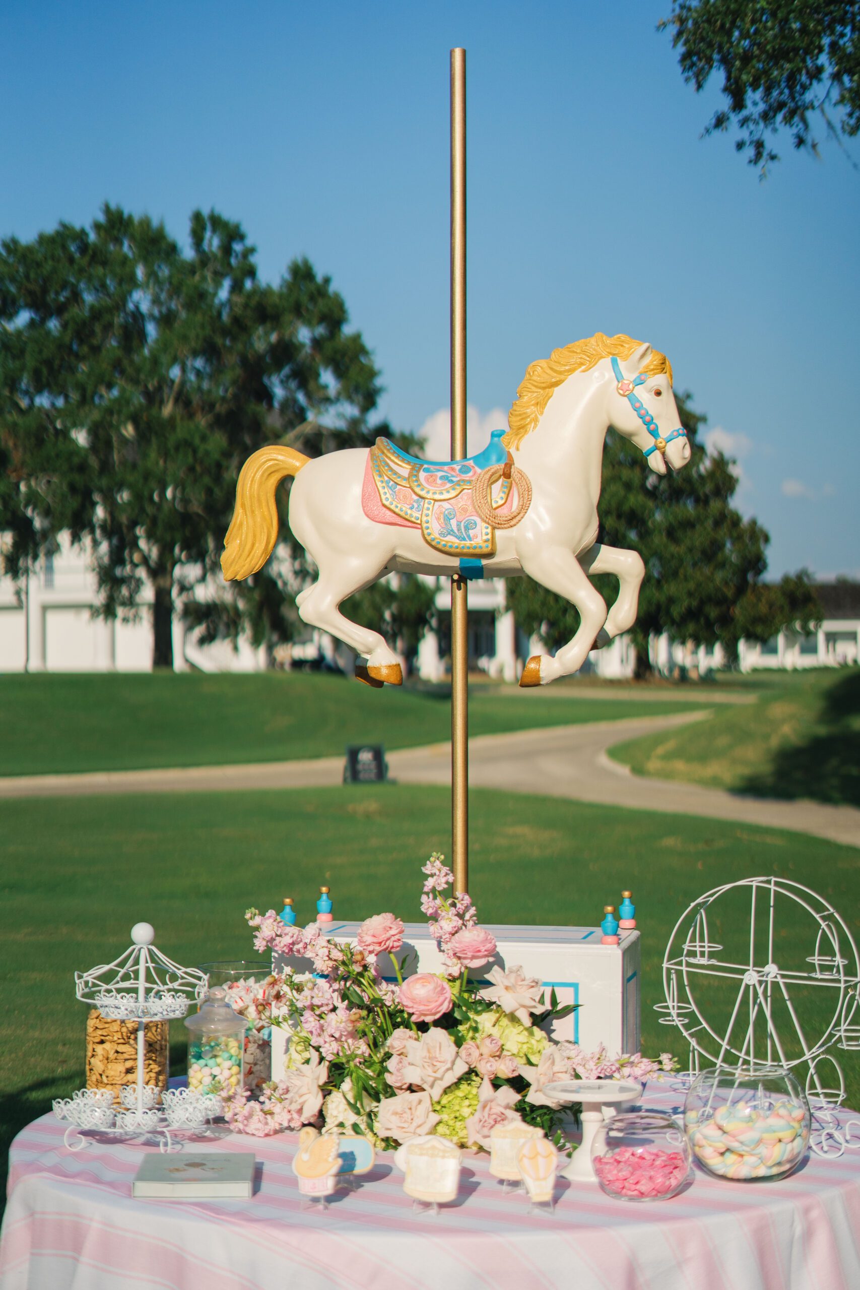 Elements of an old school carousel, a soft color palette and sweet carnival details. What more could you want for a first birthday party celebration?