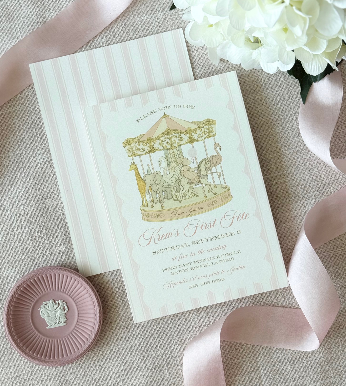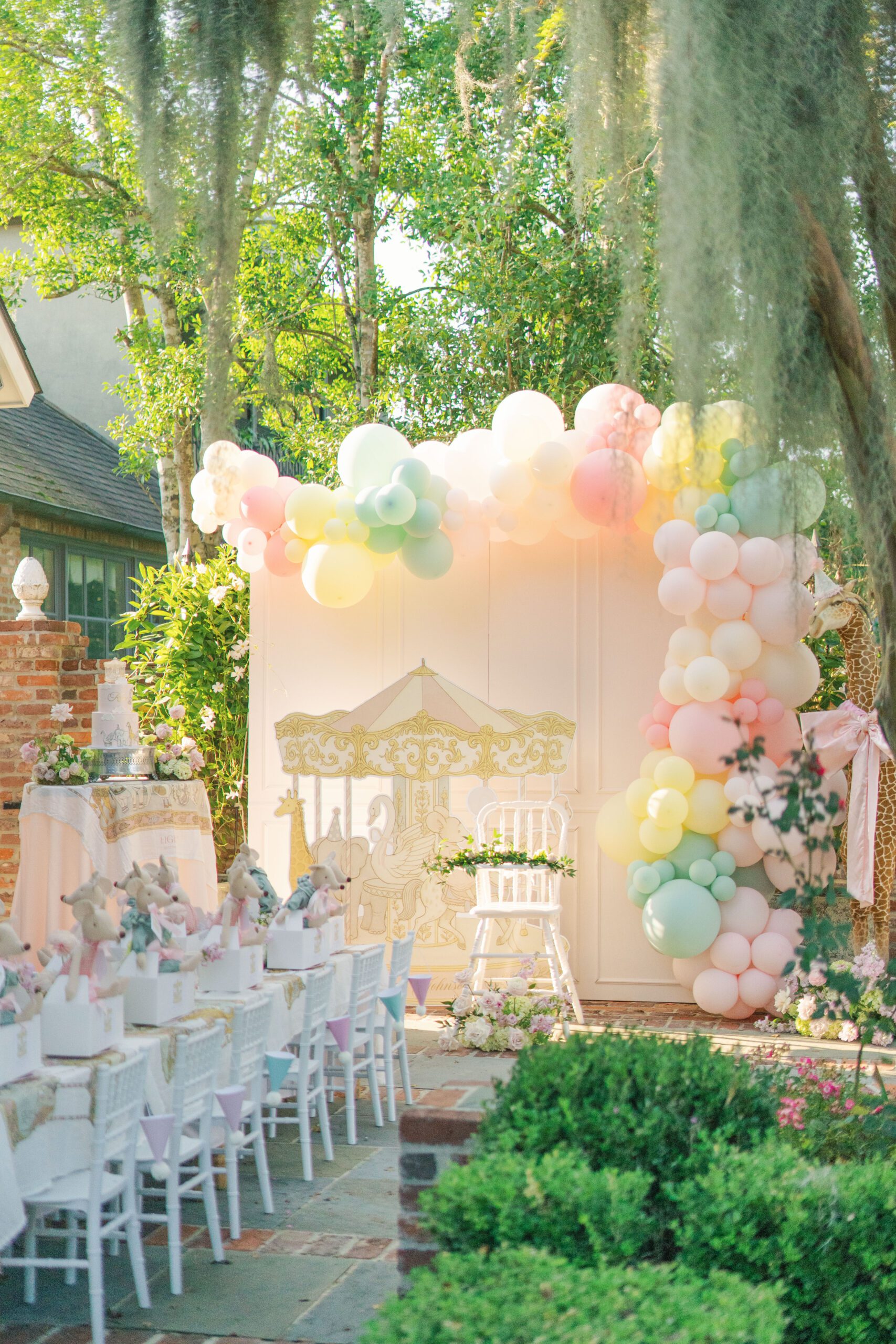 “I always said if I had another little girl, I would choose this for her first birthday, but instead I passed the carousel reins to my sweet neighbors and parents of the birthday girl, Jordan and Dustin Johnson,” Carrier says. “And oh lá lá, I’m so glad I did. This party was everything I had pictured in my head and more.”