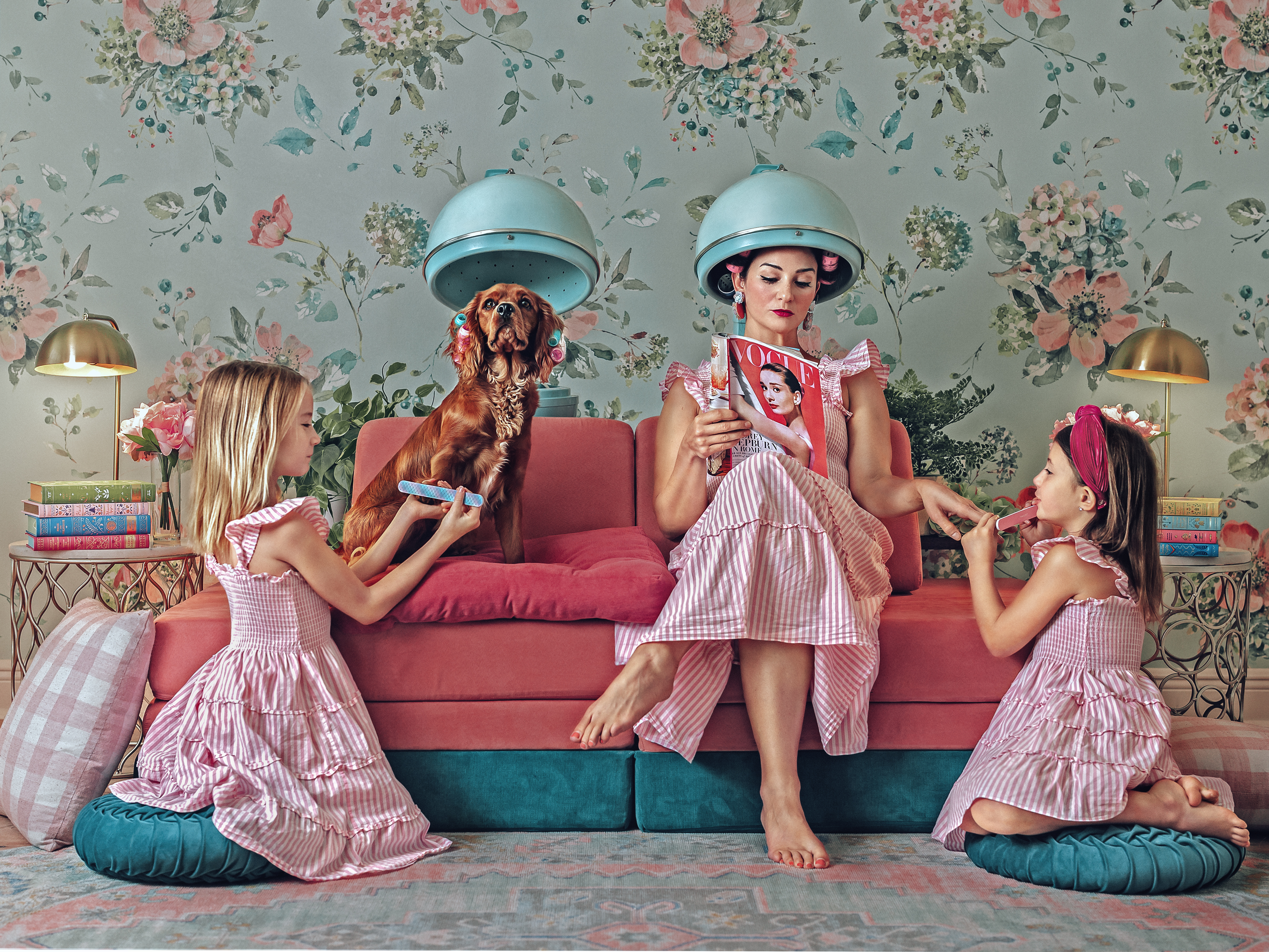 So goes the play-by-play of a not-so-typical shoot by Haxthausen, who until 2019 spent most of her professional hours as a lifestyle photographer for local clients. At the time, LeeKay Photography, named for Haxthausen’s daughters Liora Elizabeth and Emmeline Kay, had only just begun to take a more creative turn, becoming the platform for a planned series of art-inspired self-portraits starring Haxthausen and her children—think Monet’s Woman with a Parasol, the interpretation of which can still be seen on the LeeKay Photography Instagram page. Haxthausen, an LSU art-major-turned-biology-major who found her way back to photography after an initial career in the medical field, first experimented with such whimsical ideas when her daughters began expressing interest in Disney princesses.