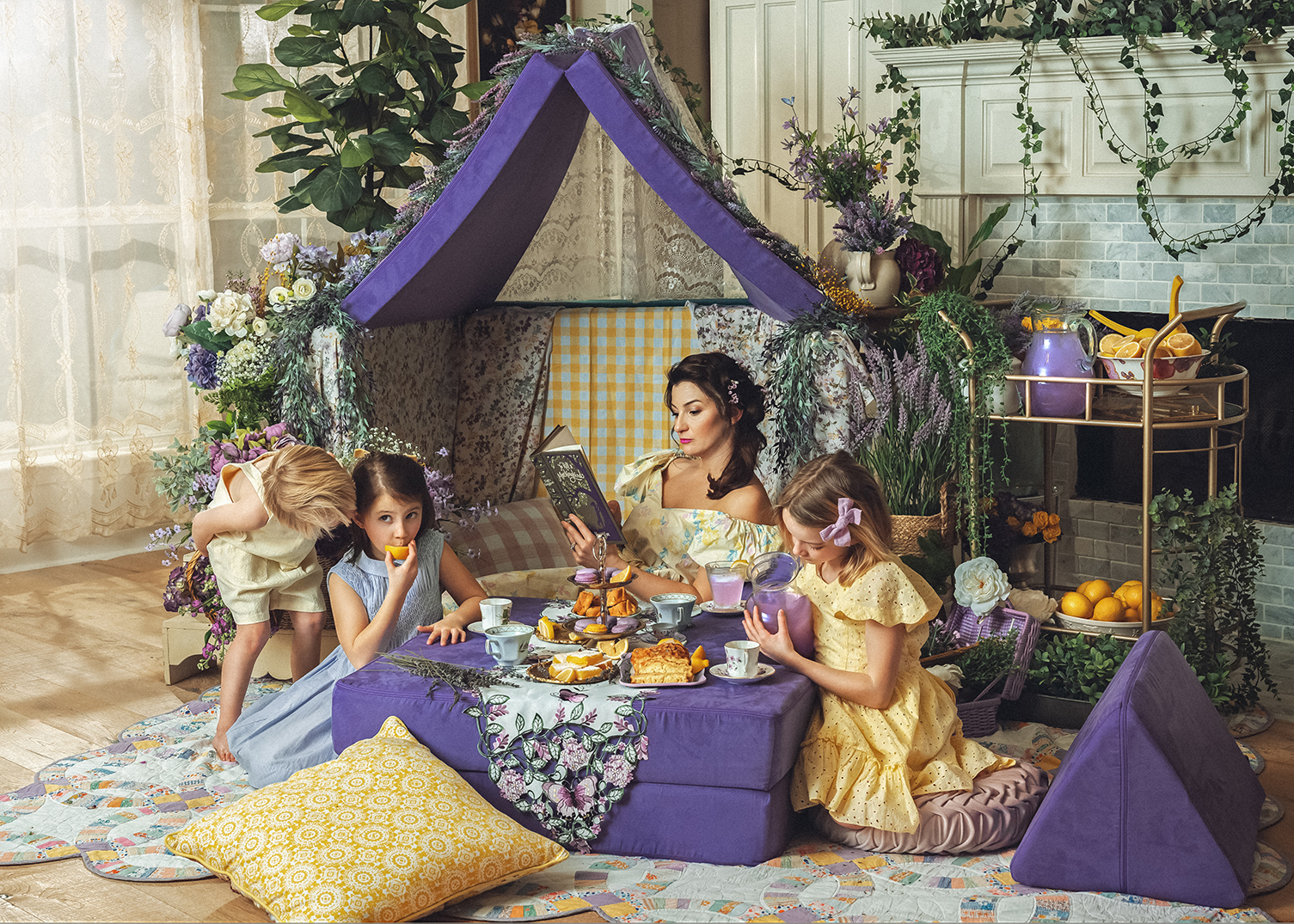 In an unexpected turn of events, Haxthausen’s personal project began attracting fans from around the world. Her carefully curated shoots—which often take weeks of planning and prop hunting, not to mention hours of editing—evoked the escapism that was so attractive during the first months of COVID lockdown. Not only that, but the ability to involve her children and husband Will in her creative life stood out as a precious opportunity to create unique memories as a family.