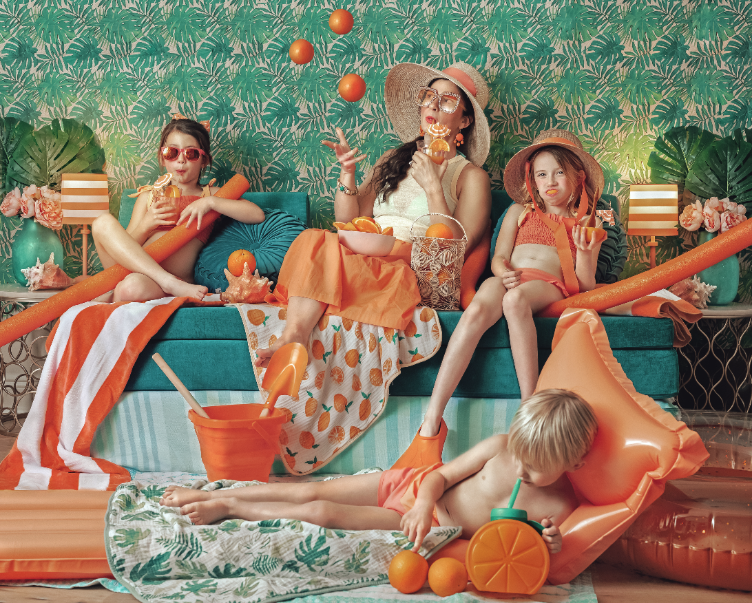 But don’t let the juicy lighting, poised postures and color-coordinated props fool you. From test shots to digital manipulation to searches through craft stores and Etsy shops, the secret sauce inside Haxthausen’s finished product lies in a lot of hard work—especially when it comes to wrangling her kids, none of whom have yet reached double digits in age.