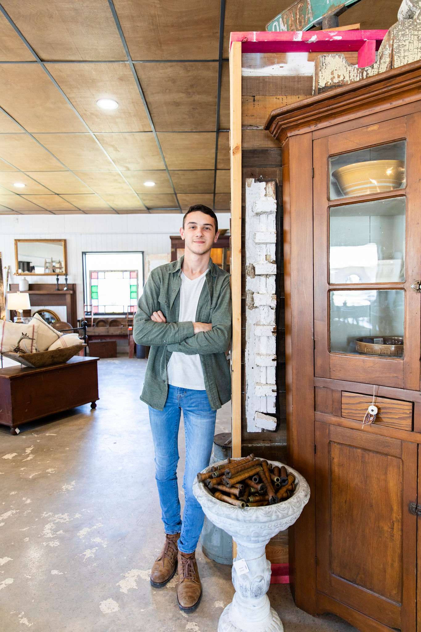 Originally starting the antique store in Denham Springs’ Antique Village in August 2017 when he was still in high school, Dupree wanted the store to bring together home décor, furniture and other accoutrement under one curated roof. “We wanted to go along with the more primitive, industrial, timeworn style,” he explains. “Here, we mix old and new to create a unique look.”