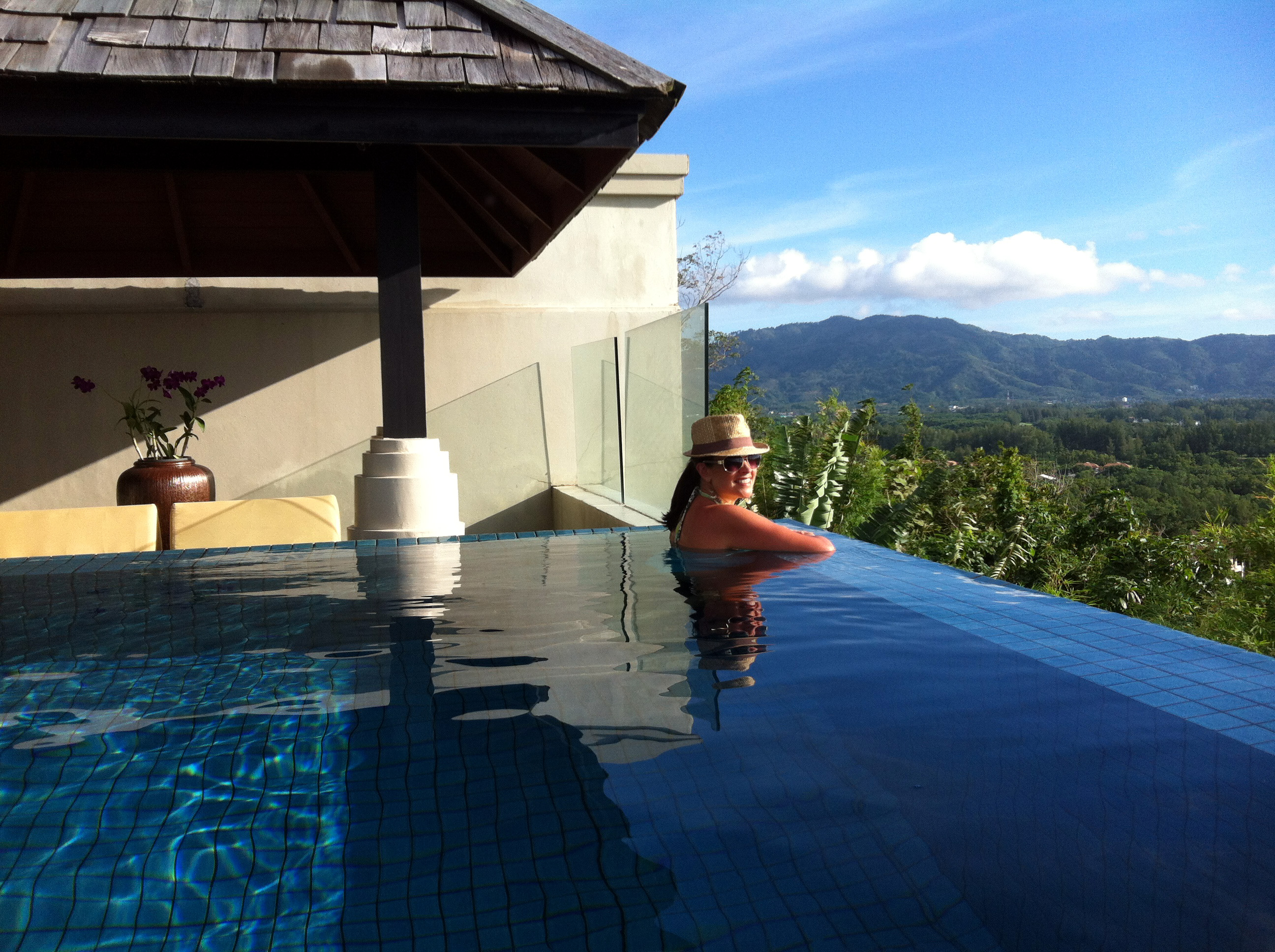 Hotel recommendations: In Bangkok we stayed at the 5 Star Peninsula Hotel for three nights. It was a wonderful spot on the river with large plush rooms. Accommodations for our five days in Phuket, called The Pavillions, was special. It included our own private villa with its own vanishing-edge pool and covered daybed….. all overlooking the Andaman Sea. Since the villas were situated on hills, the staff would stand by to transport us around on golf carts.