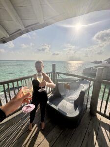 And then there was the Maldives, which can only be described in one way: mind-blowing. Only accessible via seaplane, the over-water villa included our own waterslide into the ocean, butler and access to an overwater movie theater and a 24/7 cheese and chocolate room. Every detail felt magical, but also deeply intentional. Soneva Secret is even more intimate, with 13 villas on the entire island and 160 staff members. Total seclusion. No shoes. No news. There is even a restaurant where you can zipline to dinner!