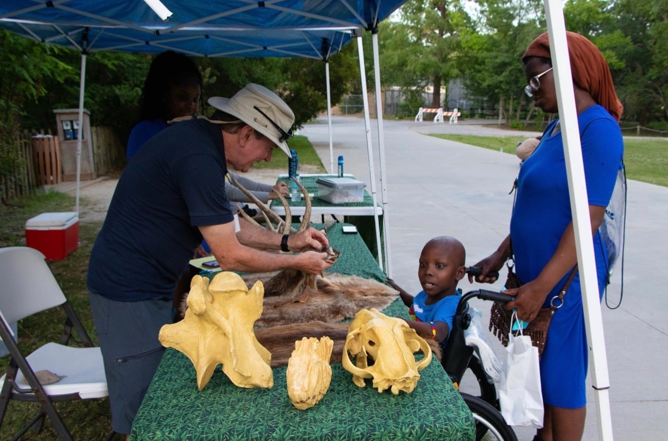 Antoine regularly volunteers during special events at the zoo, including the annual Zippity Zoo Fest and Boo at the Zoo. During these celebrations, Antoine shares Bio-Facts provided by the Zoo Education Department to help guests better understand the animals. Bio-Facts include animal structures like furs, skulls or bones, horns and antlers, turtle shells and more to provide a visual representation of the information.