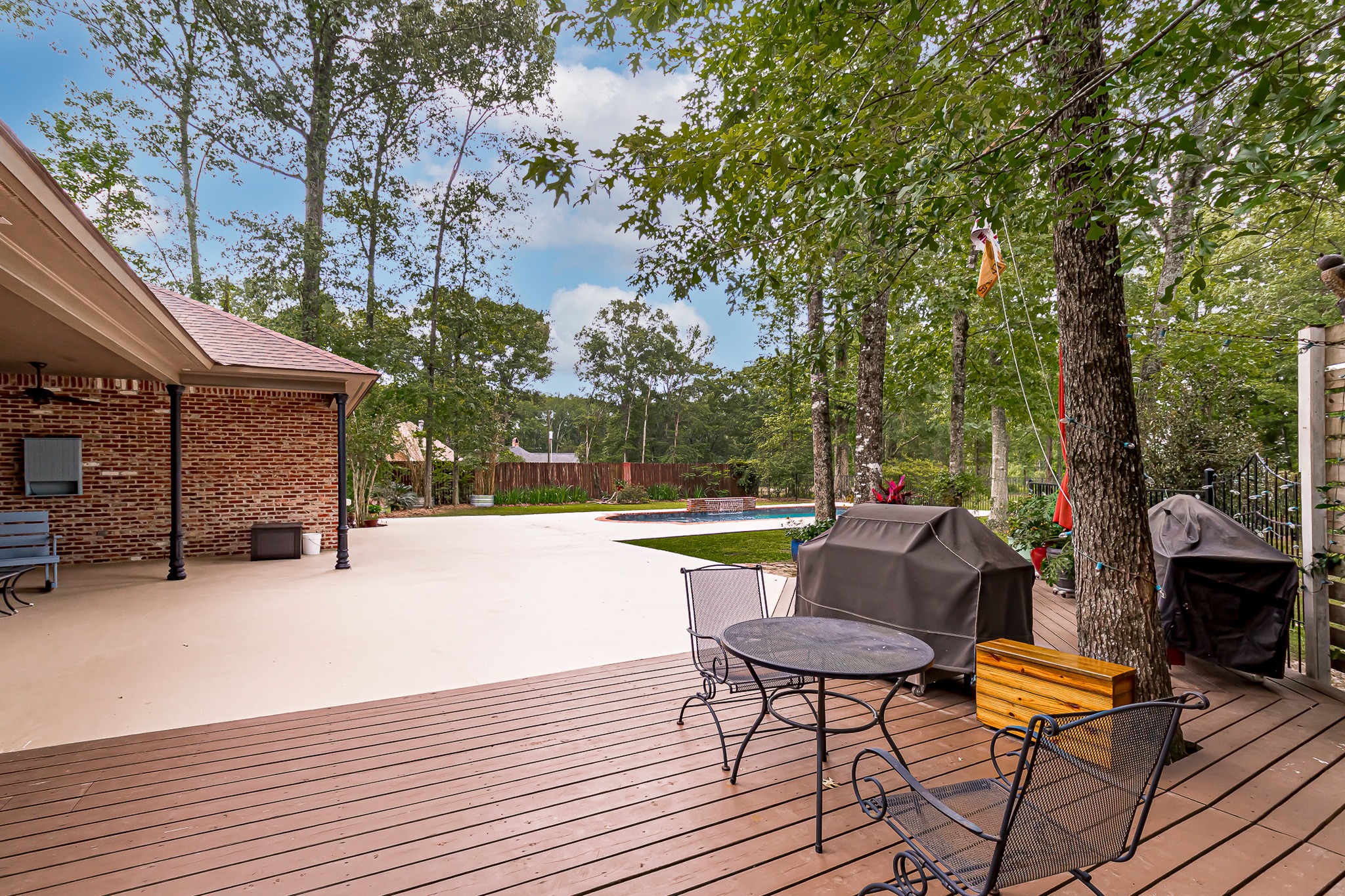 Relax and refresh on the rear porch and expanded patio with outdoor speakers, or swim in the saltwater gunite pool after a long, exhausting workday. This home is a showcase; visitor can’t help but appreciate the original owner’s planning and detail accomplished to create a comfortable family home and setting.