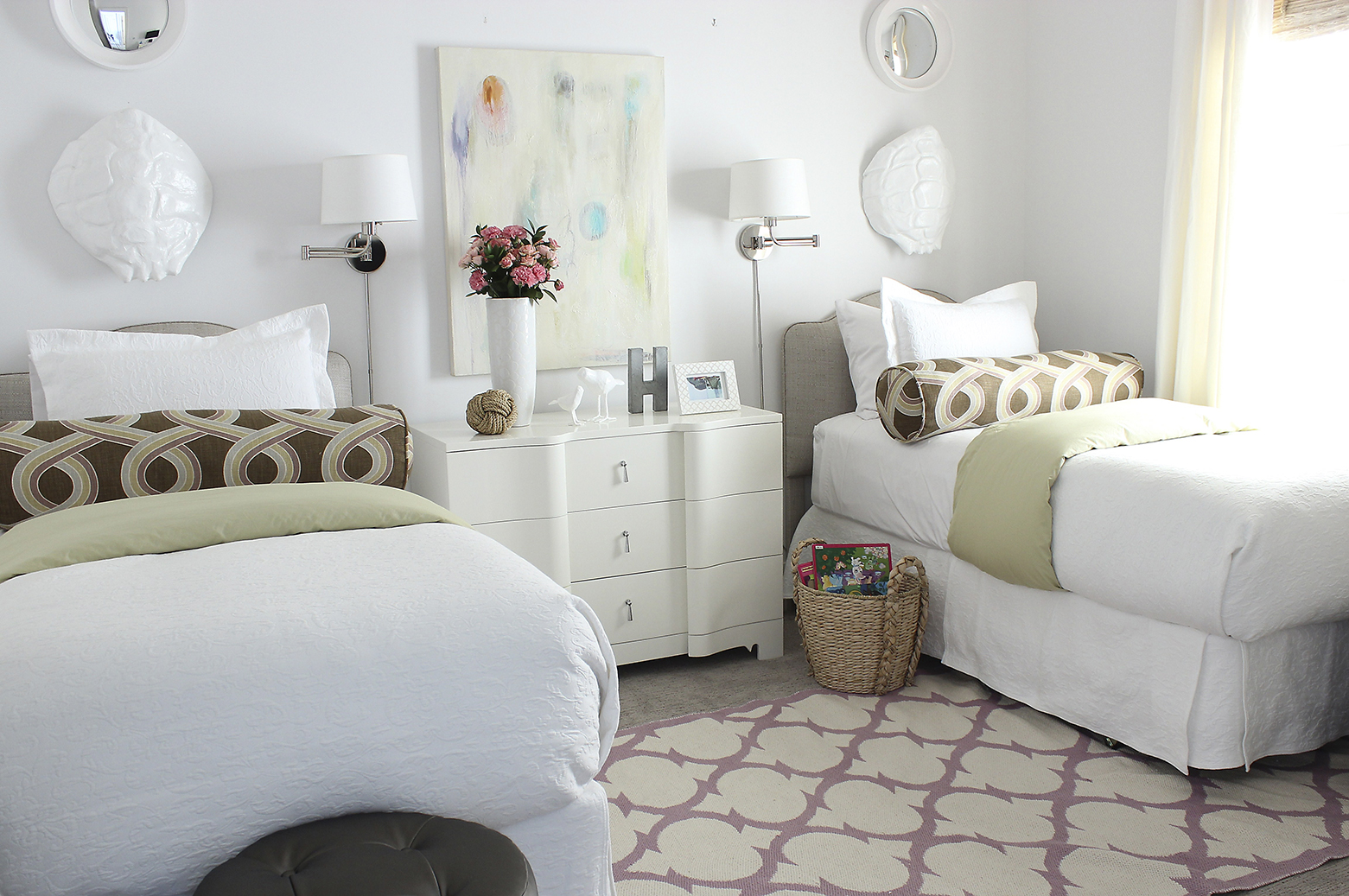 Even though this project would be brought to life two states away, Cannon and her clients agreed that they wanted to source as many items as they could here in Baton Rouge. Many artworks were created by Capital City artists and found at The Foyer. To keep the budget in check, she also chose several items from online sources ranging from Pottery Barn to Ballard Designs to Crate & Barrel, and she topped off seating and sleeping spots with custom pillows in high-end fabrics.