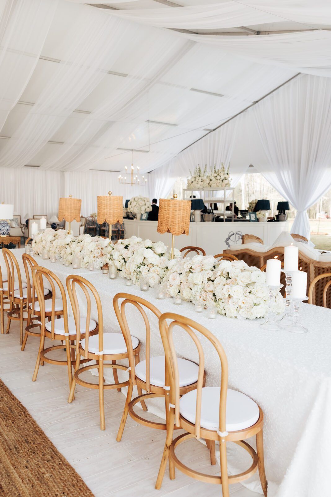 The following day, the newlyweds rallied for the big reception at their new home, which welcomed some 250 guests to share in the celebration. “I think it was a no-brainer,” says Lindsey of the decision to hold the reception at home. “We wanted part of our story to be having the reception here, since the house had already been such a big part of our relationship.”