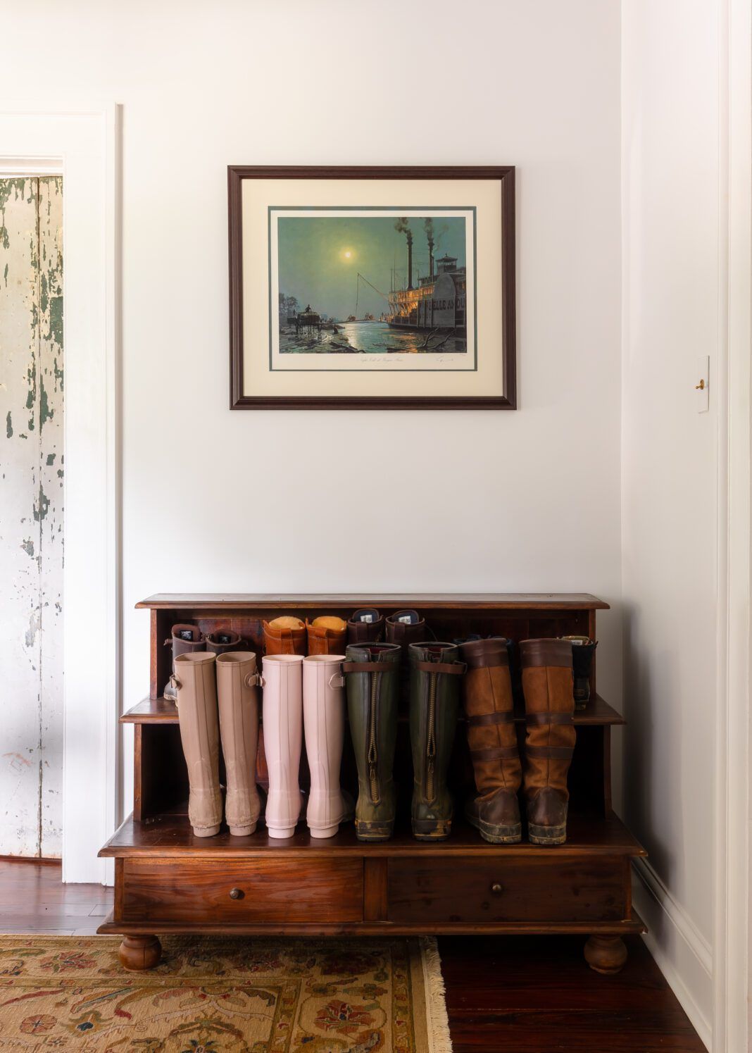 In keeping with the home’s historic background, Chris purchased a large collection of antique furniture that had originally been used at Roseneath, a 1832-built home in Jackson. “That helped us to come up with a lot of the stylistic ideas for the rest of the house,” Lindsey says. “It doesn’t look 100% like it would have if we had been completely true to the time period, but we paid homage to the history and to the area.”