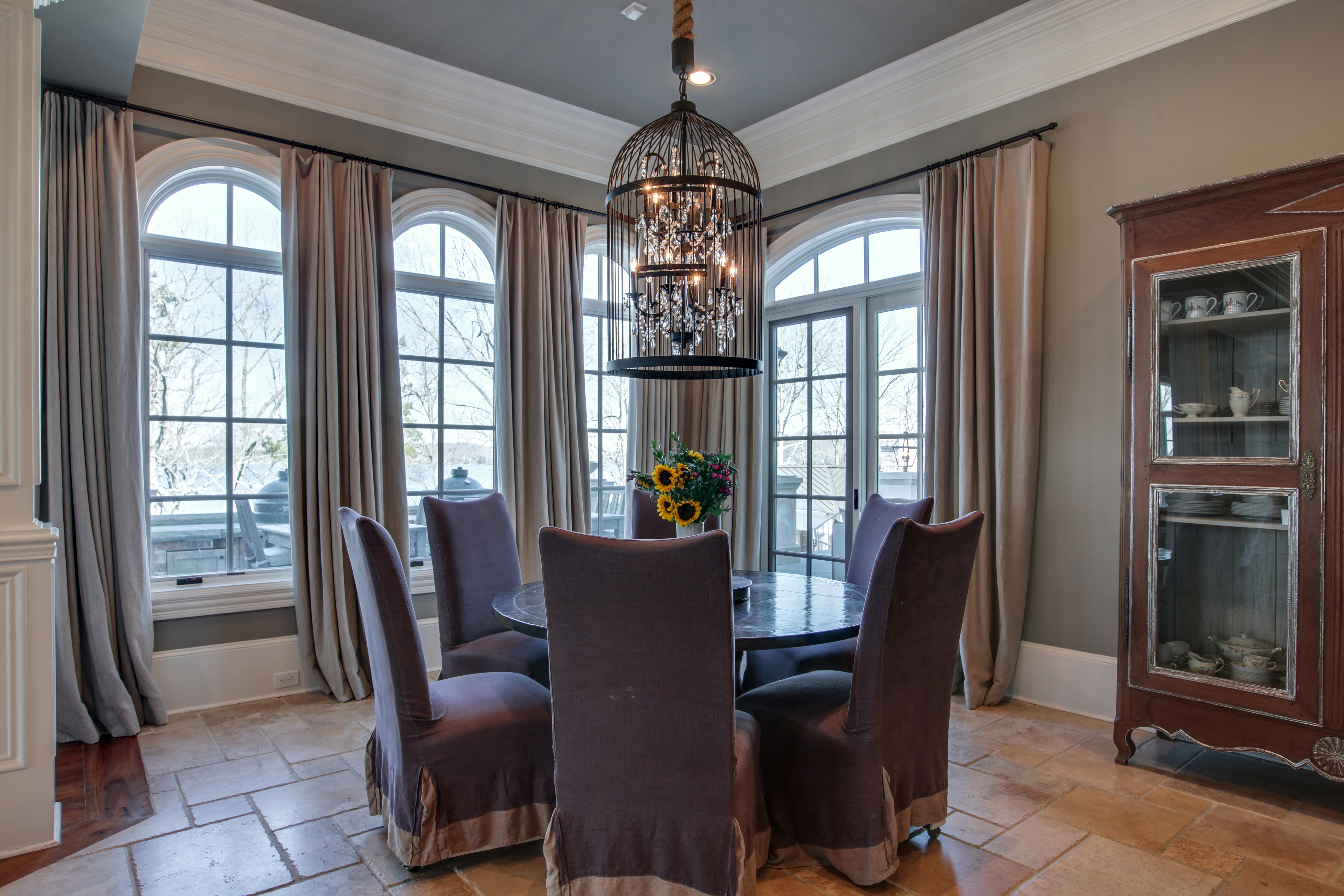 Larkins notes that the designer took an interesting and different approach to mixing styles. “The stainless steel countertops on the bar area are definitely a modern, restaurant-style approach to the kitchen,” he says. “When you look at, it comes across as being traditional, but when you dissect it and take it apart, there are enough modern approaches that give it a slight twist on the same-old-same-old.”