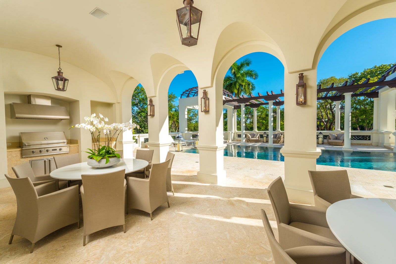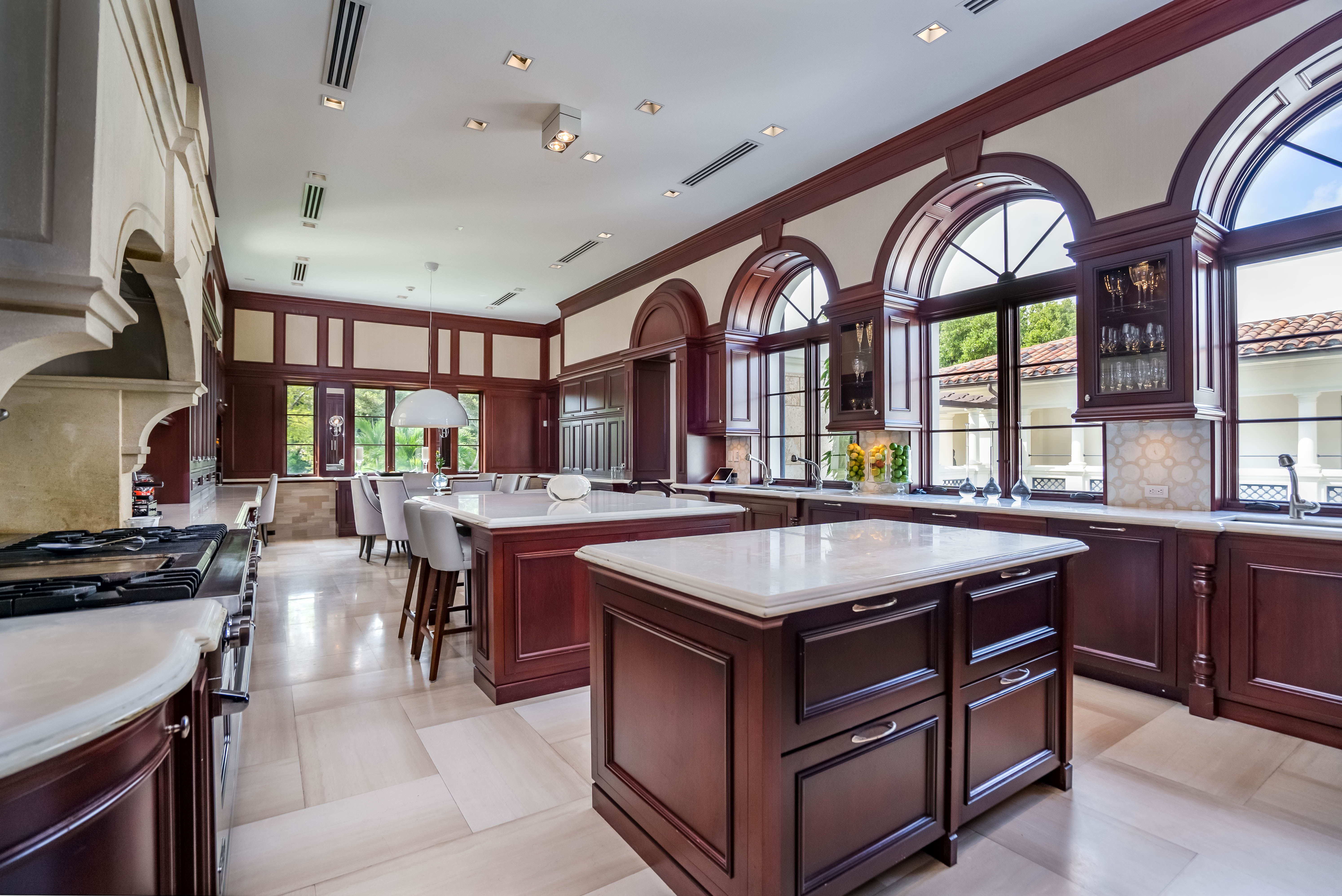 At 20,546 square feet, Anthony’s mansion is one of the largest homes in south Florida, featuring 12 bedrooms and 13.5 baths, three kitchens, a wine cellar, separate staff quarters, and an elevator to all three floors. We reached out to Shannon Mahon of Shannon Mahon Interiors looking for a local perspective on the design of the main living space of the mansion.