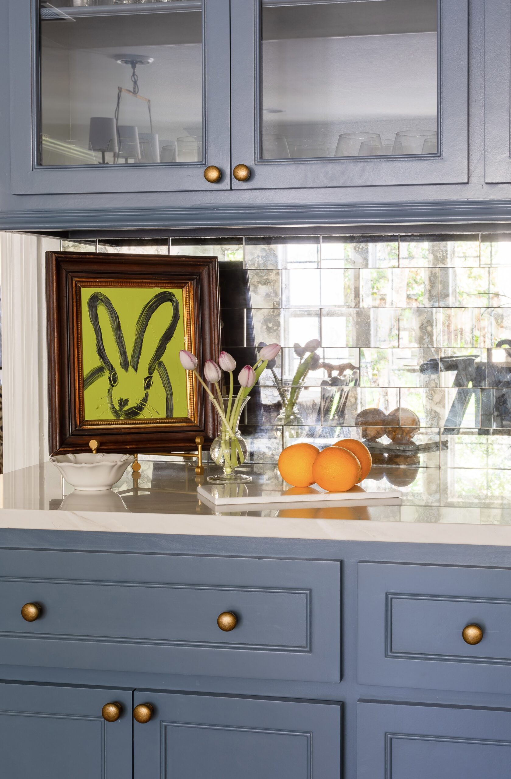 “Chartreuse is a fun color to layer into a space because it feels fresh, playful and a little unexpected. I especially love pairing it with navy, as the depth of the blue grounds the vibrancy of the green. In these spaces, chartreuse shows up through art and accessories, adding energy and contrast against rich navy cabinetry. The result is a combination that feels bold yet timeless, balancing classic elegance with a fresh edge.”