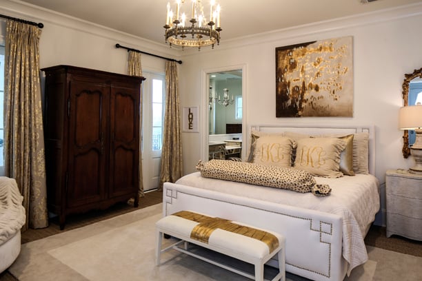 The luxe look also fit right in with the home’s everyday décor. “What I strive for is comfort with sophistication,” Dee says. “I like to mix abstract and contemporary art with traditional pieces. I have a lot of antiques and I like to use them, even if it’s not in a traditional way.”