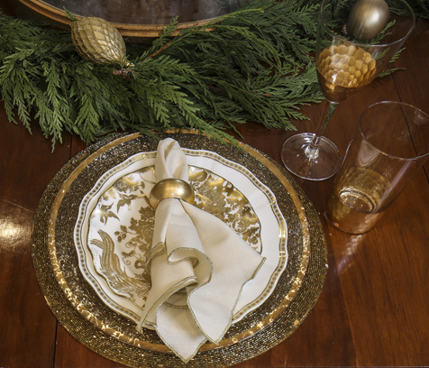 Though her children are all older and out of the house, everyone still returns at Christmas. Dee hangs up the needlepoint stockings that her mother made, and she sets the dining table early so it can be enjoyed all season long. Decorating the table is a special passion for Dee, who has collected china ever since she worked in the dinnerware department at Goudchaux’s as a teenager. “I love china,” she says. “It’s so much fun to bring it out and to set out the linens, the napkin rings, the glasses, all those pretty things.”