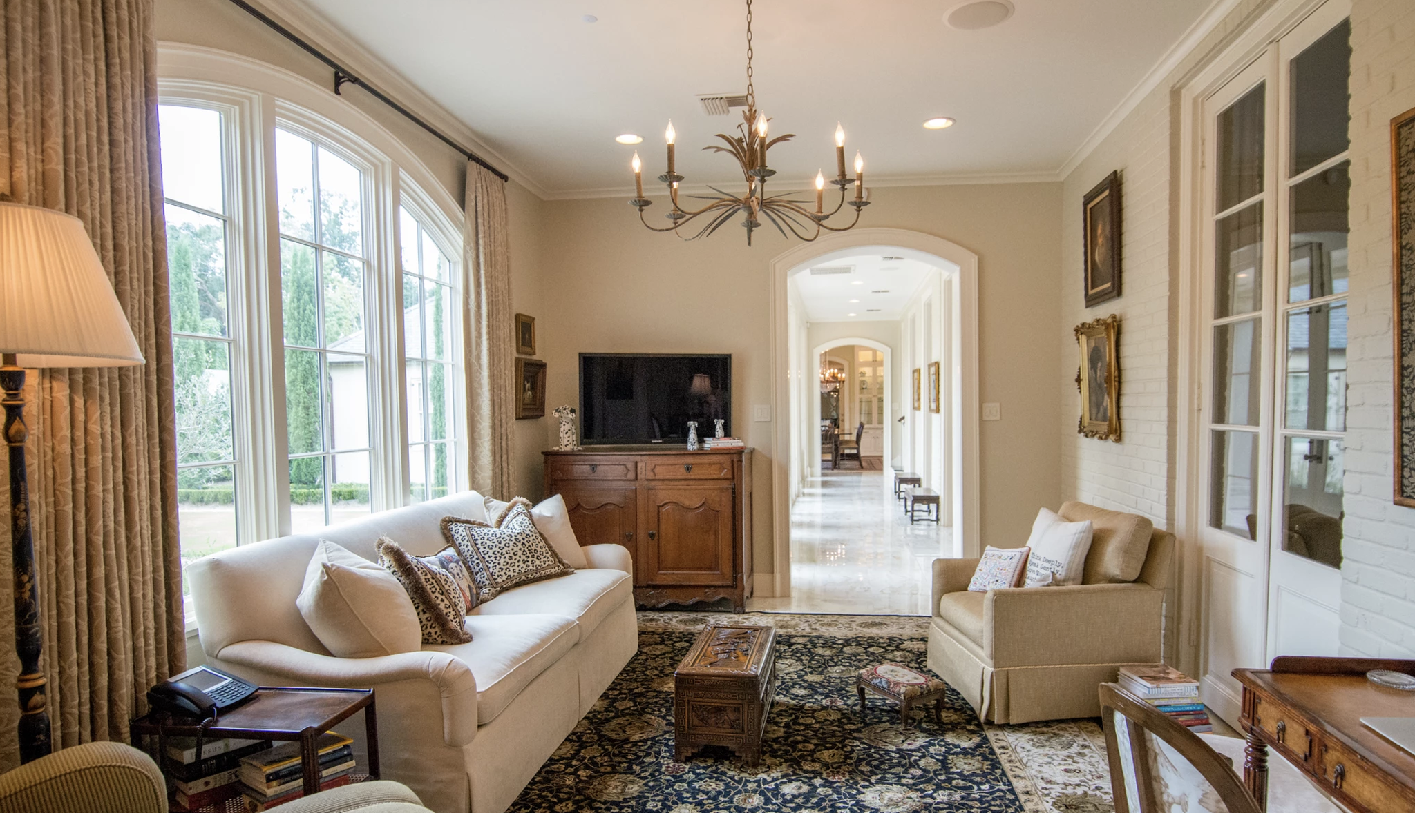 “Light fixtures can often times be an afterthought,” says Brown. “We focus on what’s at eye level: floors, furnishings, lamps, etc. However, ceiling lighting—and even wall lighting—is just as important. Not only the amount of light, but the visual, style and scale of the light. Just like the wrong size rug or lamp can look out of place, the wrong light fixture can be distracting.”