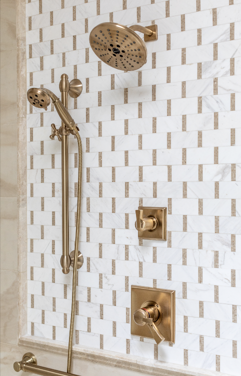 To create a bathroom with dimension, using multiple tiles is absolutely crucial. However, when it comes to making sure the different shapes and colors complement each other, rather than compete, it can get tricky. For Cannon, the key is working with different sizes to deliver a layered and textured look.